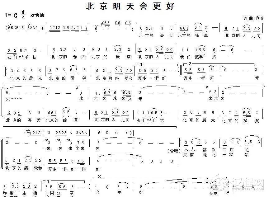 戏曲曲谱天安门(车行词 陈光曲、混声合唱)