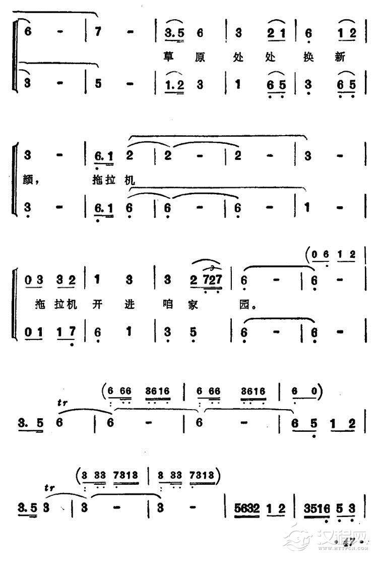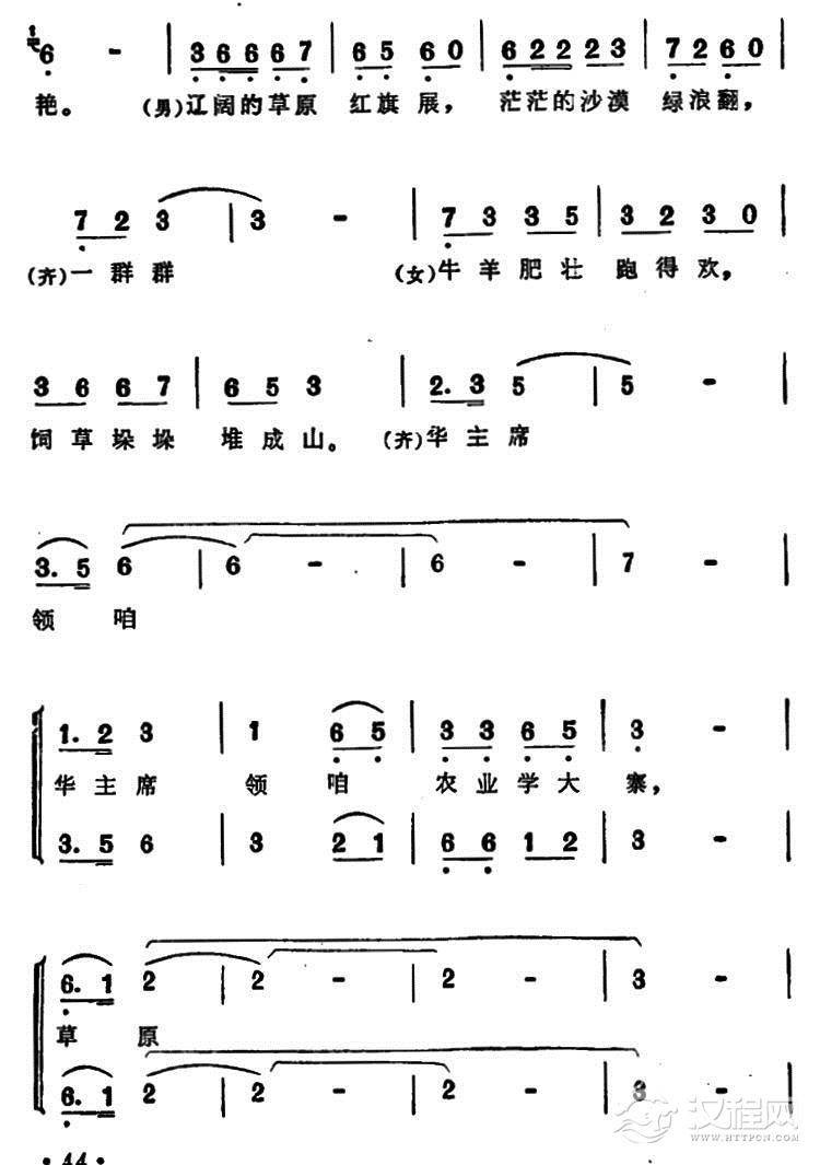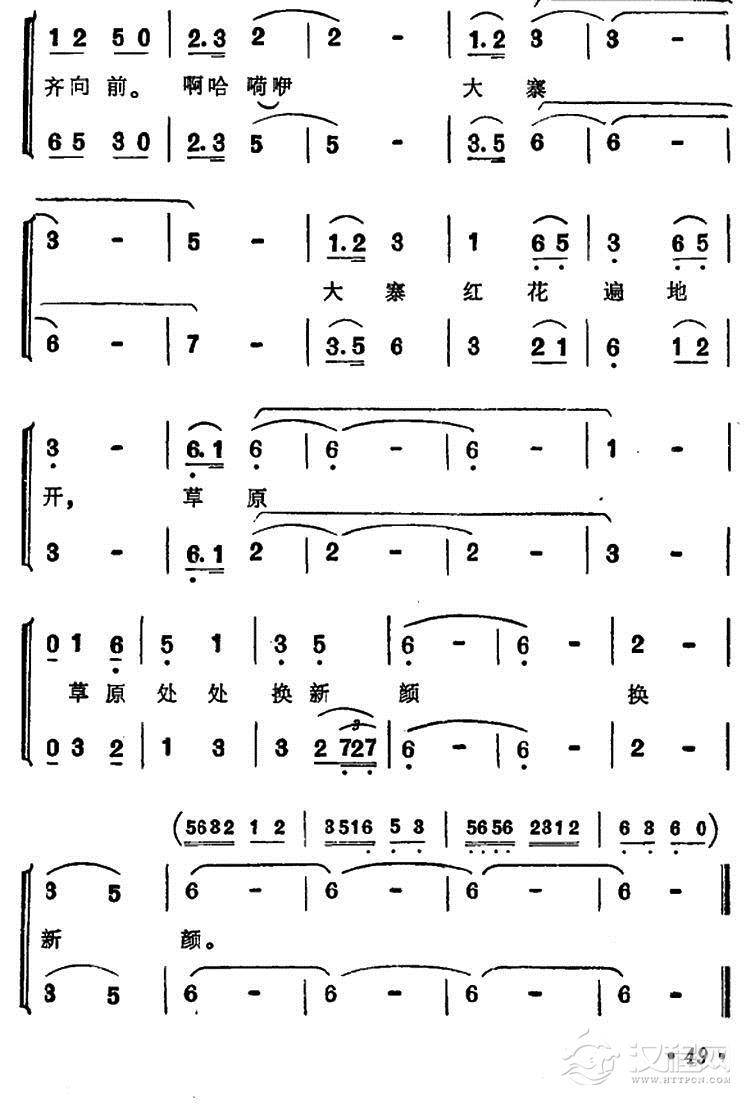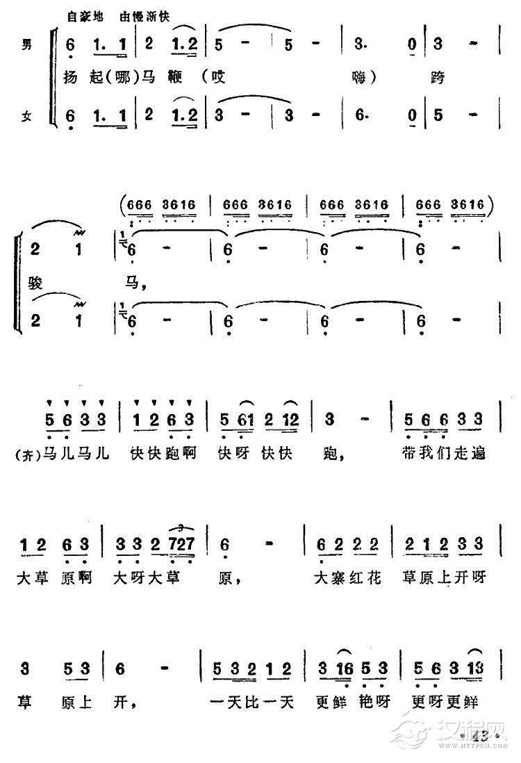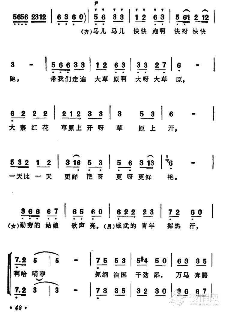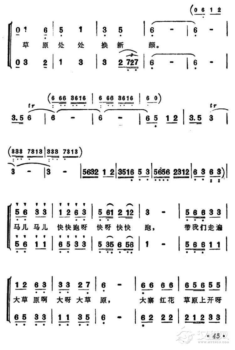 戏曲曲谱战马飞奔在草原上(女声二重唱)
