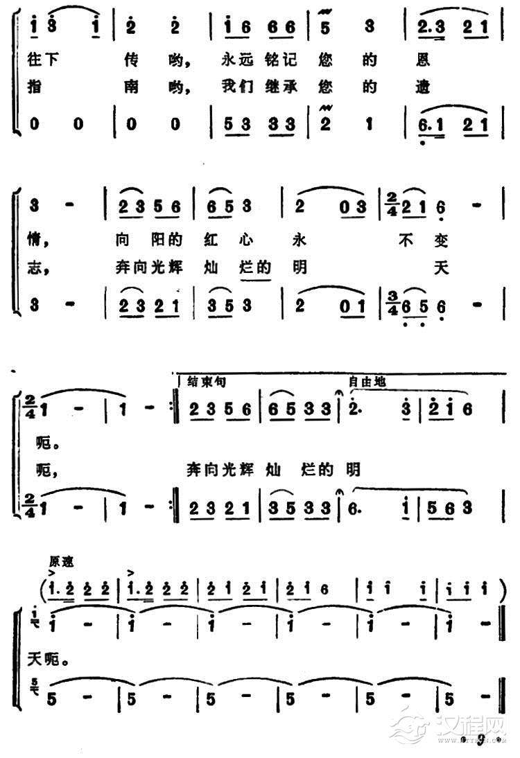 戏曲曲谱敬爱的周总理,我们从心底里把您怀念(男声四重唱)