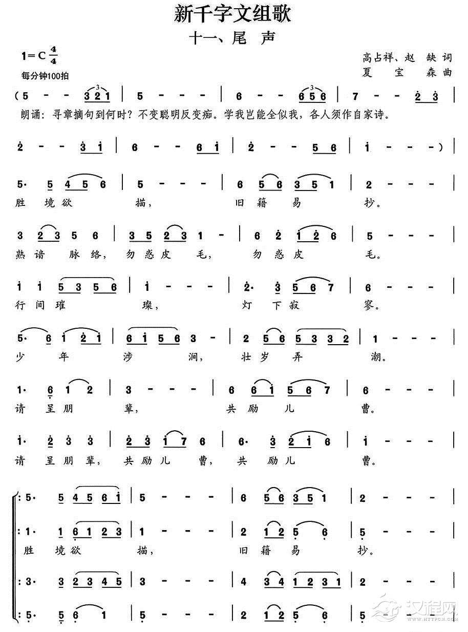 戏曲曲谱新千字文组歌八、人间正道(男声合唱)