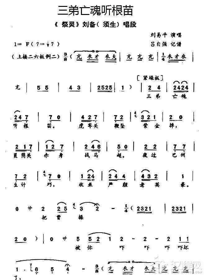 戏曲曲谱[秦腔]一世间你的情性傲(《祭灵》刘备唱段)