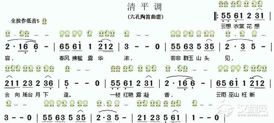 六孔陶笛曲谱【清平调】