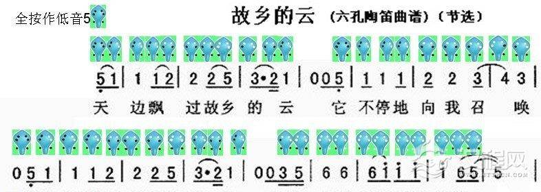 六孔陶笛曲谱【故乡的云】