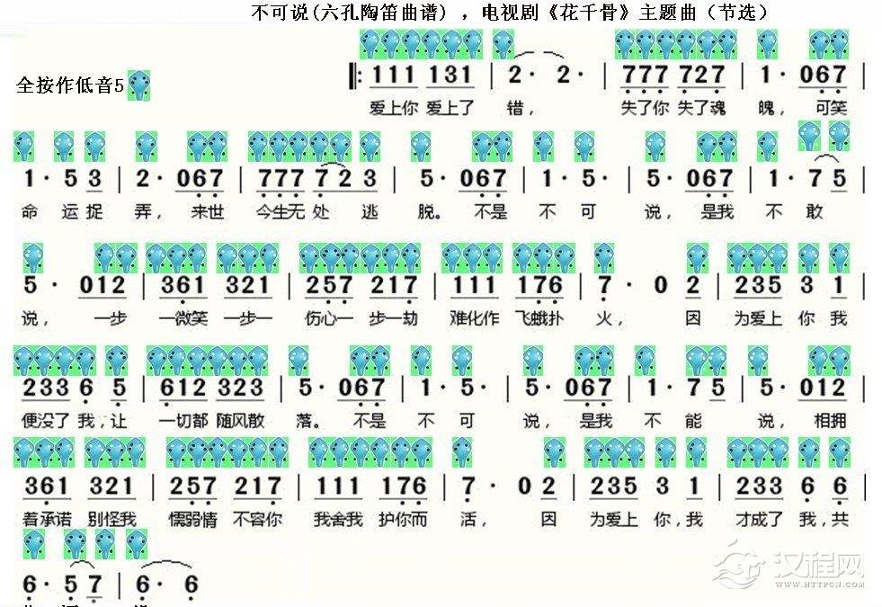 曲谱大全四孔陶笛谱【女儿情】