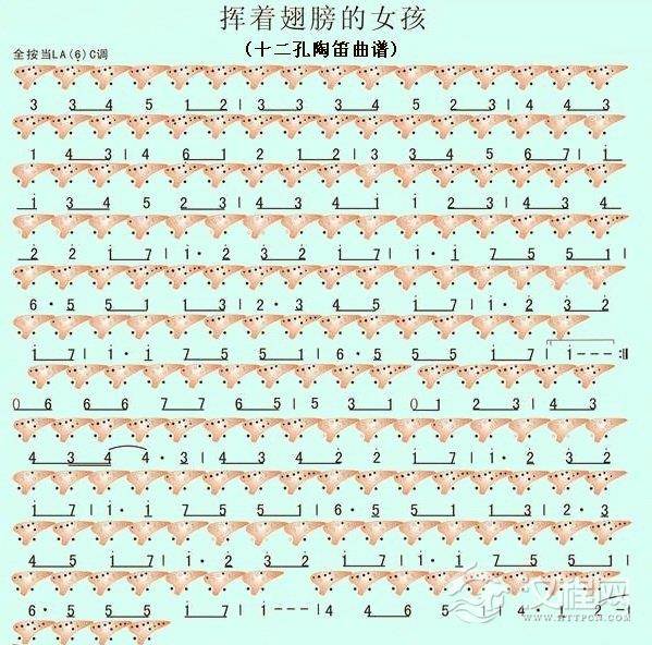 二孔陶笛曲谱【挥着翅膀的女孩】