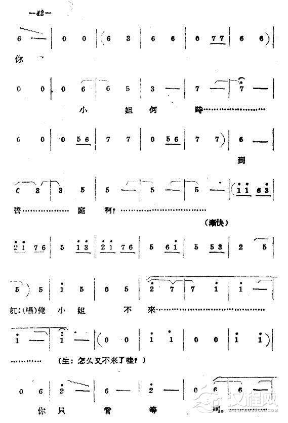 戏曲曲谱花正红时寒风起(《牛郎织女》织女、牛郎唱腔)
