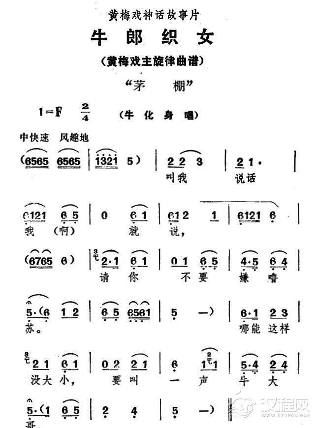 戏曲曲谱黄梅戏故事片《牛郎织女》序曲—片头