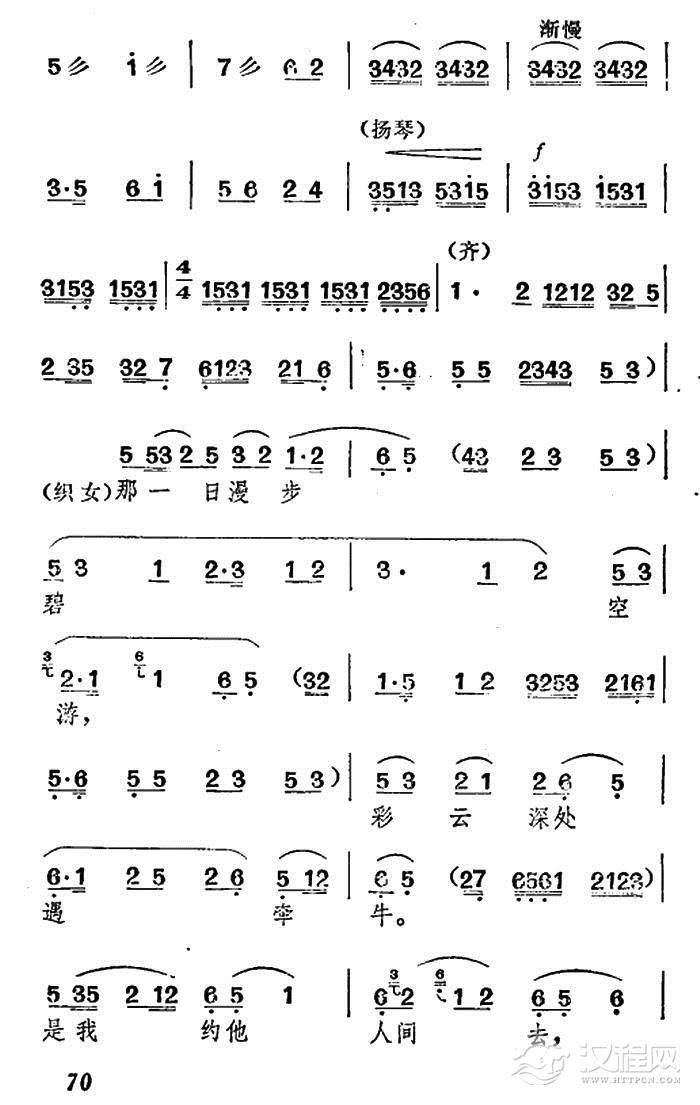 戏曲曲谱天上人间比翼飞(《牛郎织女》织女唱腔)