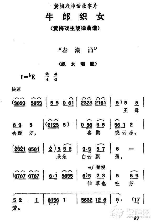 戏曲曲谱黄梅戏故事片《牛郎织女》序曲—片头