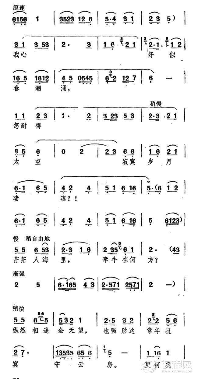戏曲曲谱空守云房无岁月(《牛郎织女》织女唱腔)