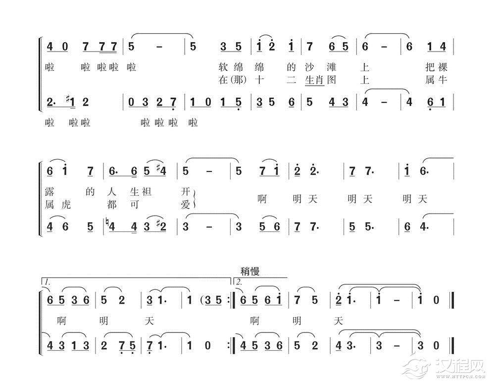 戏曲曲谱祖国母亲,萨拉姆(李幼容词 戴建华曲、男声四重唱)
