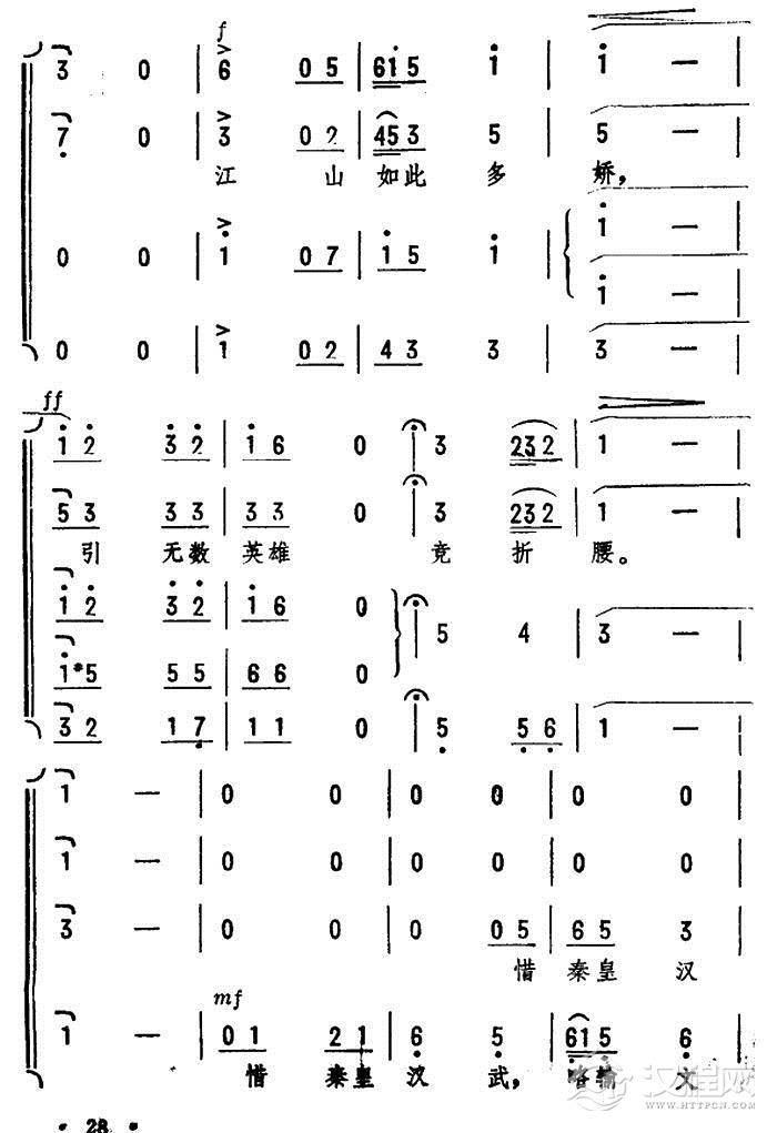 戏曲曲谱誓死抗金还我河山(《满江红》选段)