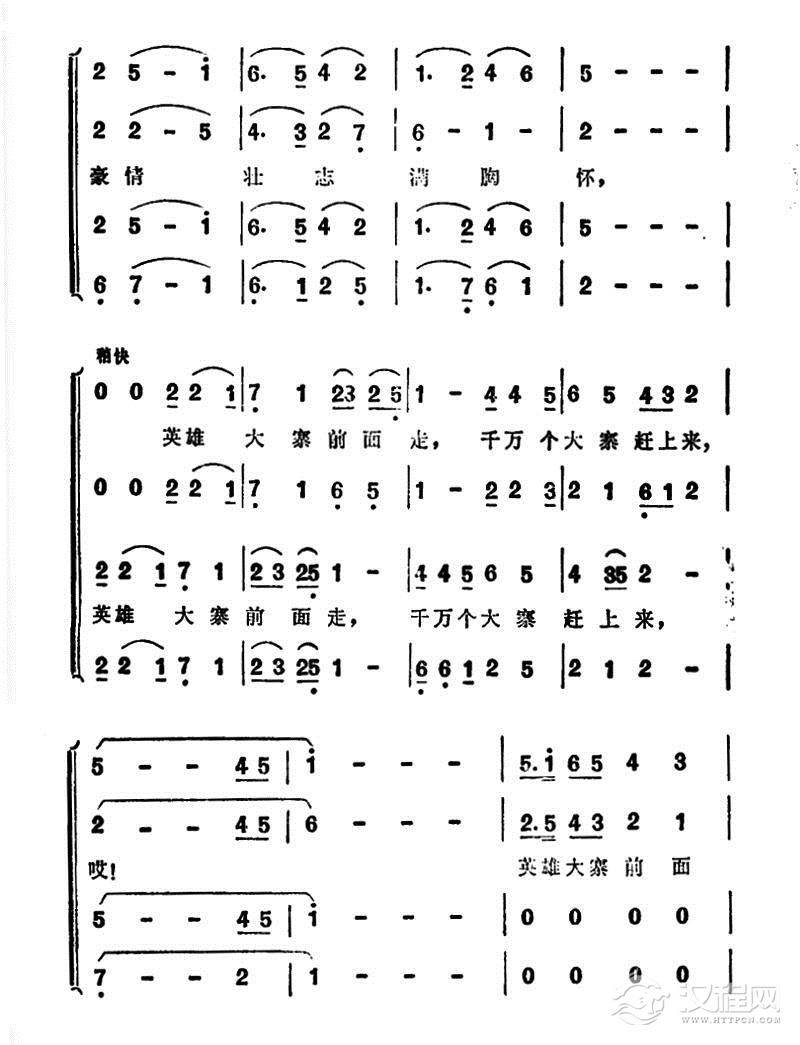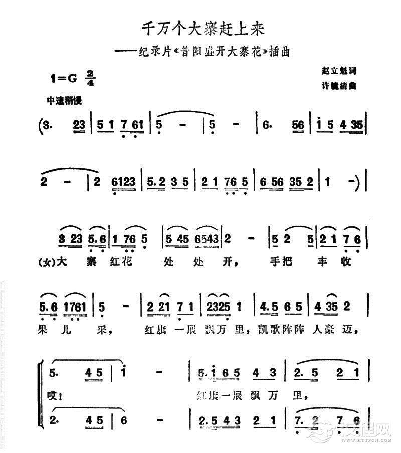 戏曲曲谱太阳照亮了虎头山(科教片《大寨田》第二集插曲)