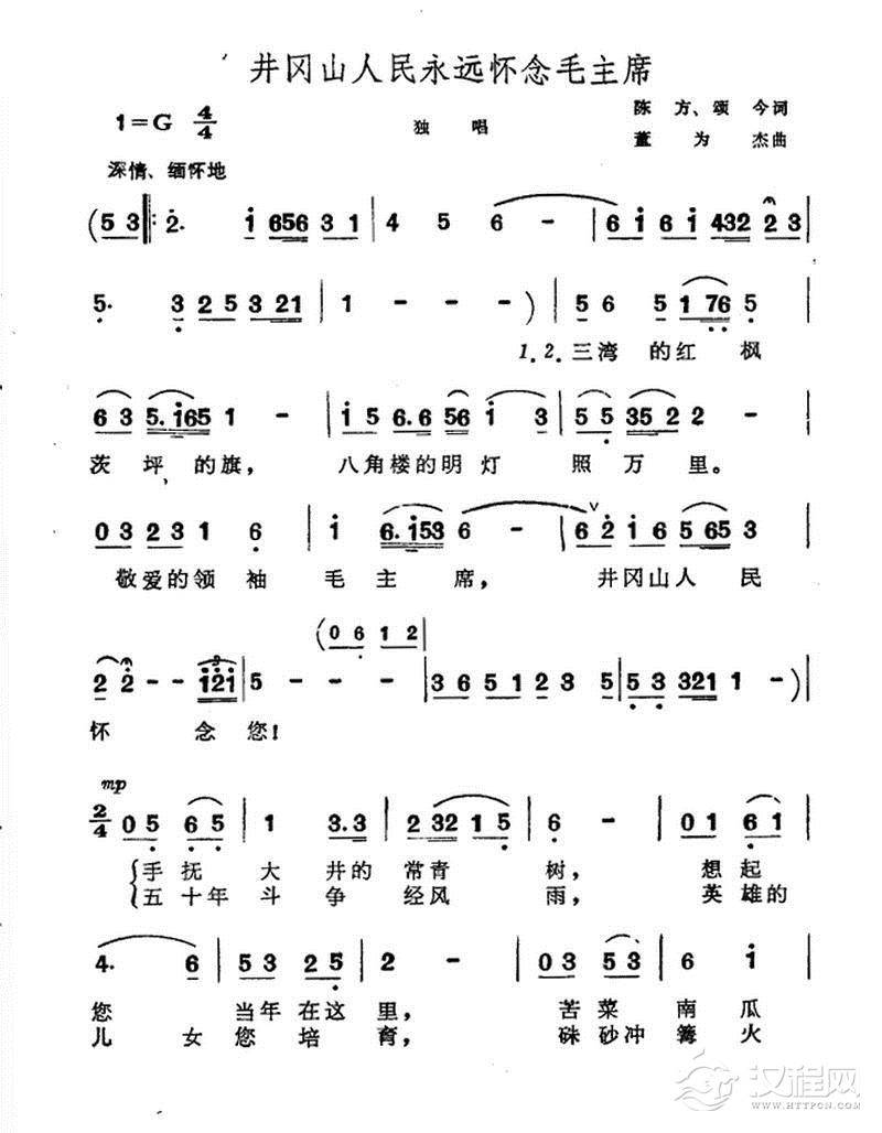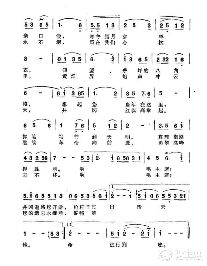 戏曲曲谱毛主席,井冈山人民无限热爱您