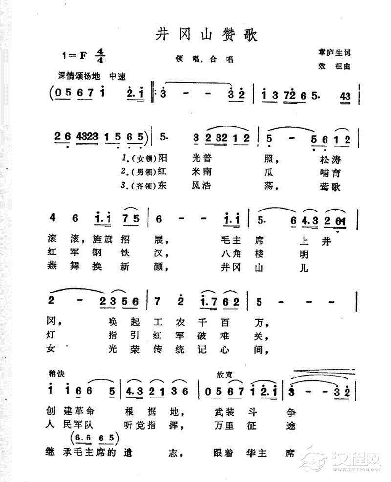 戏曲曲谱毛主席,井冈山人民无限热爱您