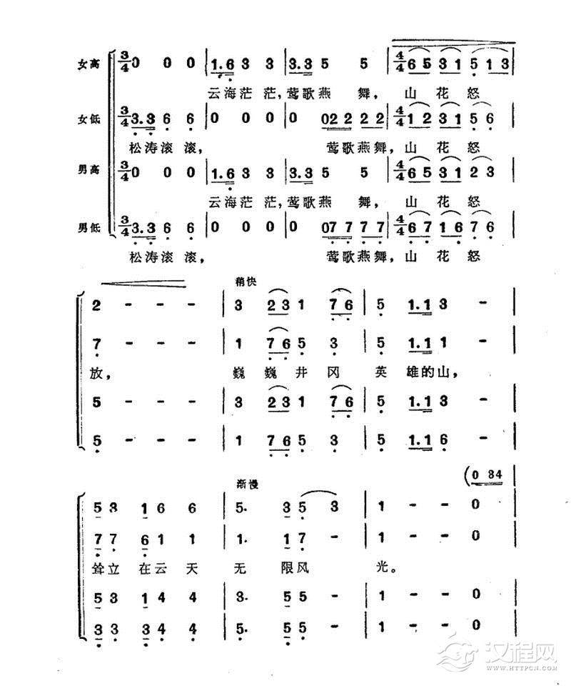 戏曲曲谱井冈会师歌