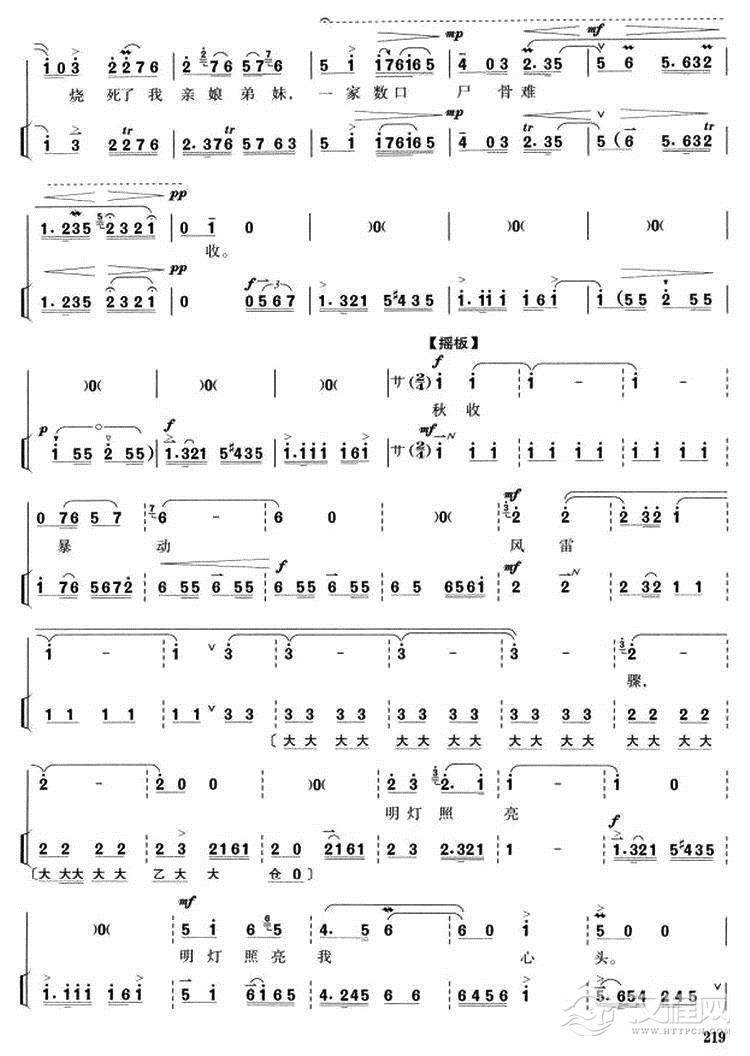 戏曲曲谱大火熊熊照亮天(《杜鹃山》乌豆唱段)(唱腔+伴奏)