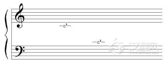 要注意:C谱号的中间缺口对准那条线,那条线就作为中央C,其它的音高位置由此音来进行推断。