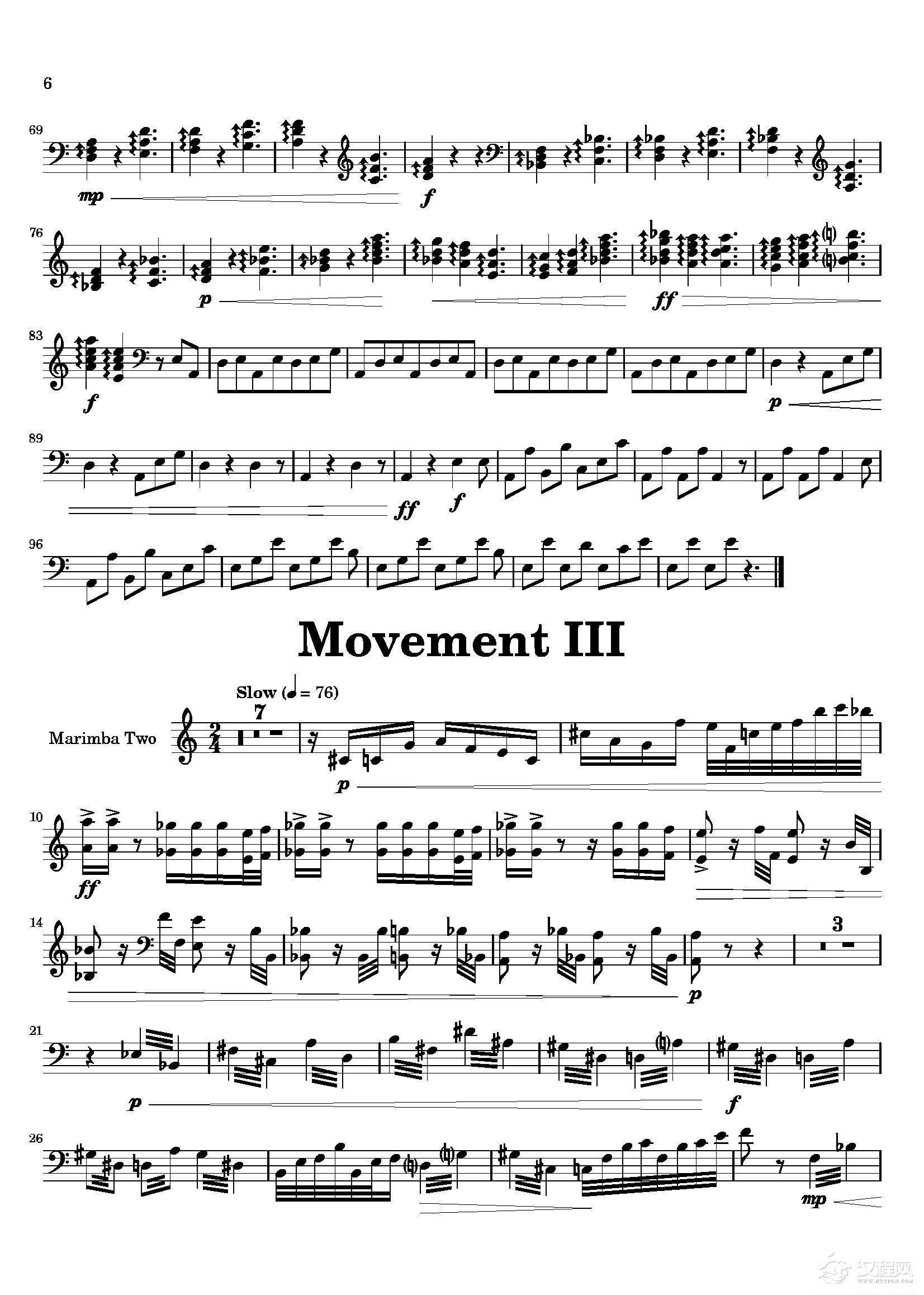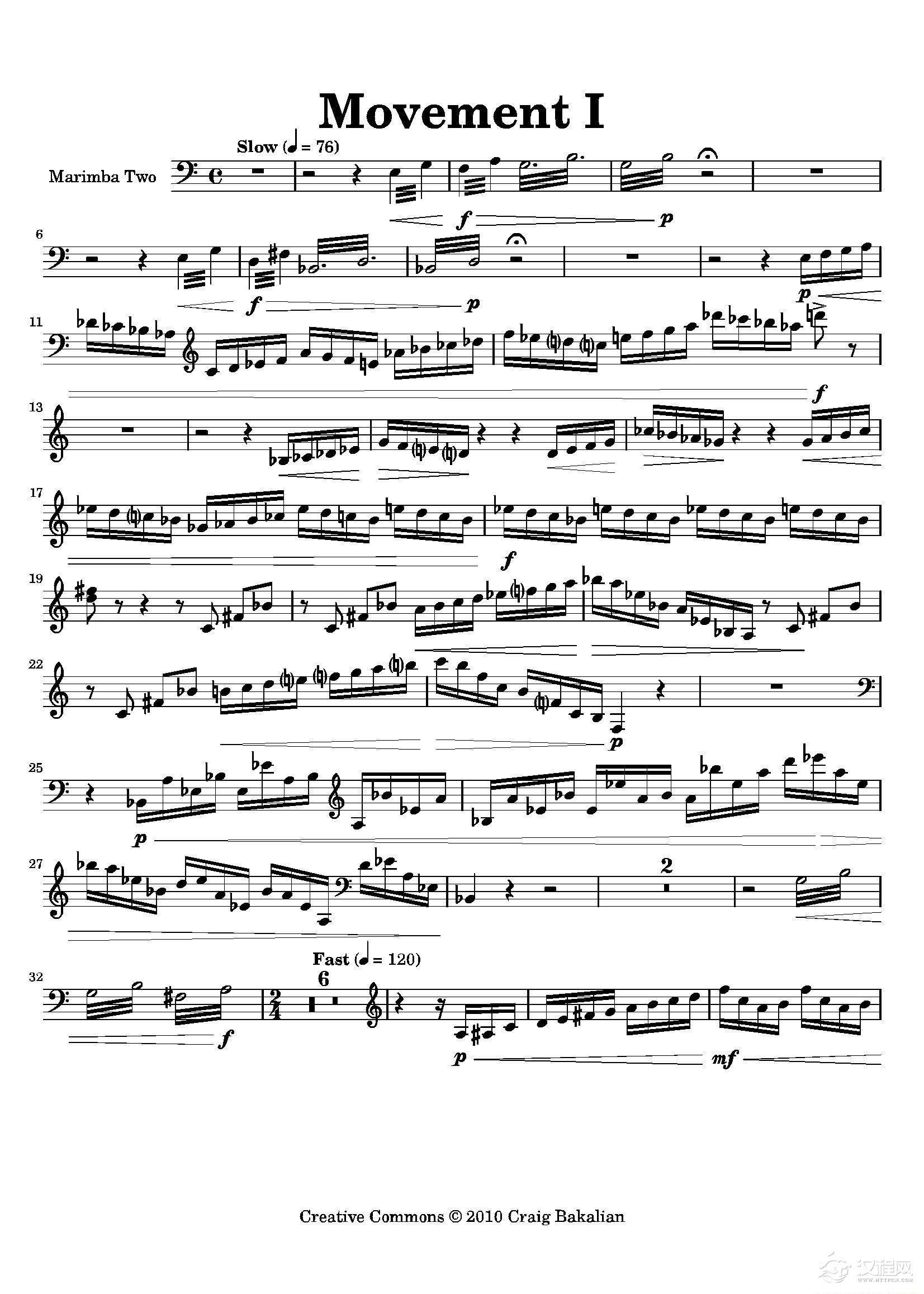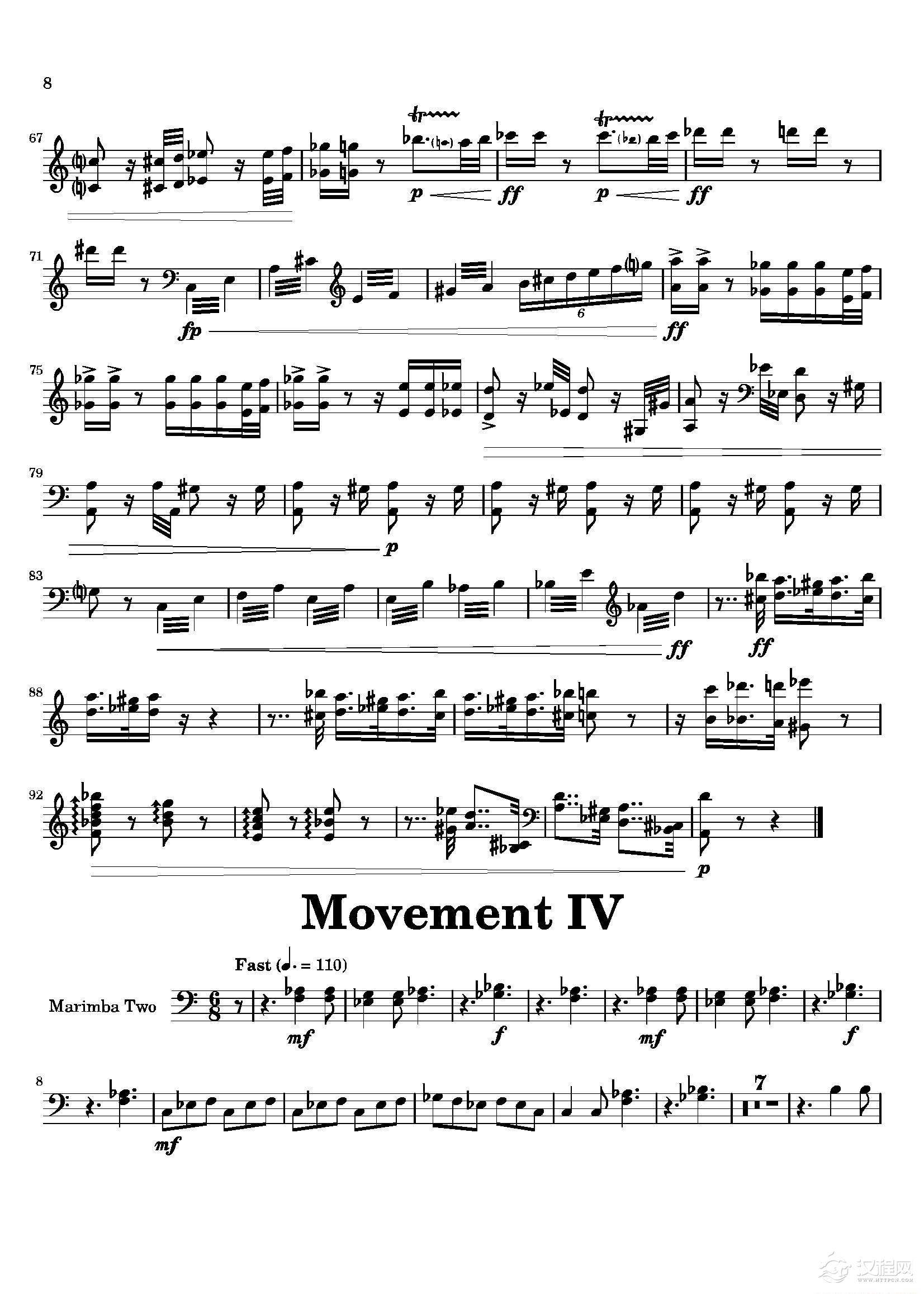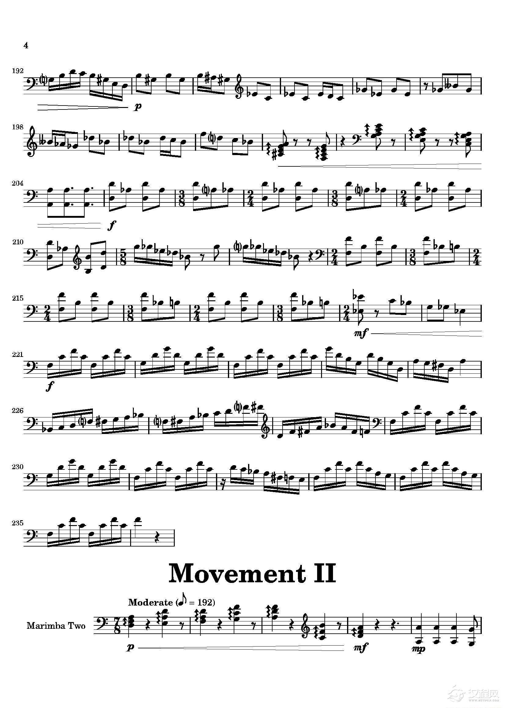 曲谱大全Movement(萨克斯四重奏与打击乐)(第一木琴分谱)