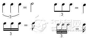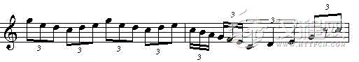 三连音就是将本来可以平均分成两份的基本音符的时值平均分成三份。这是运用得最多的一种连音符。