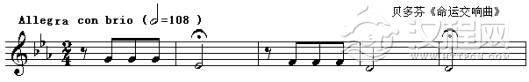 在贝多芬的《命运交响曲》中的典型节奏型是: