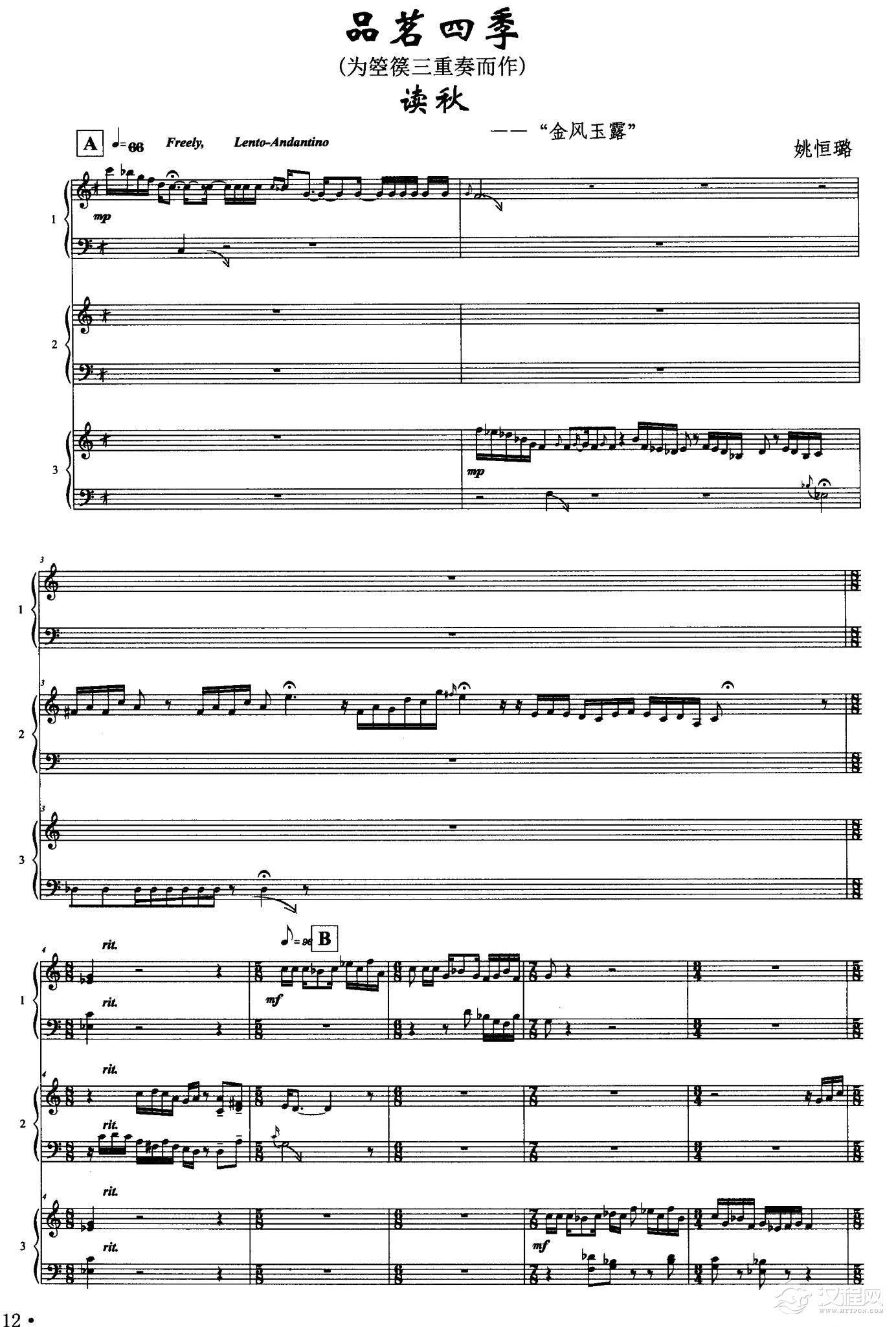 曲谱大全品茗四季:独冬——“水木清华”(箜篌三重奏)