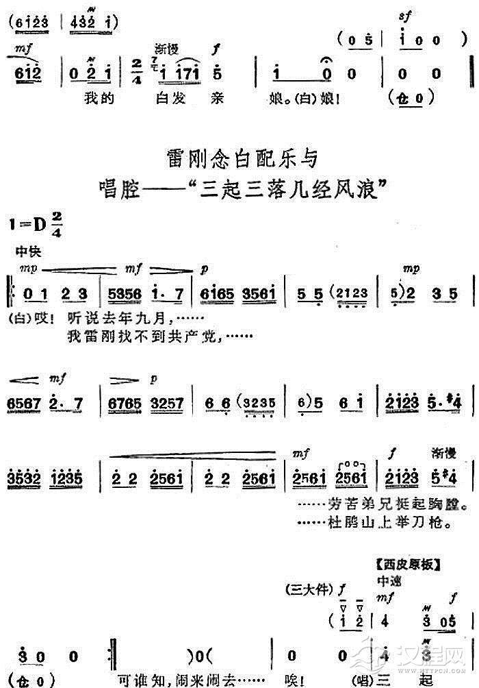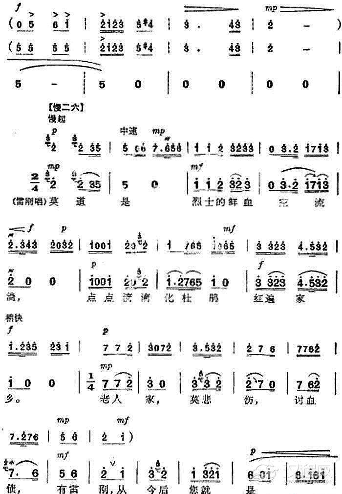 戏曲曲谱革命现代京剧《杜鹃山》全剧主旋律乐谱之第三场 情深如海