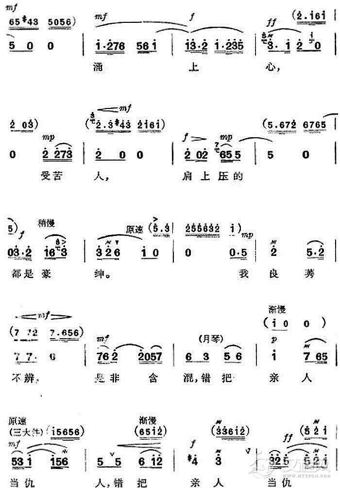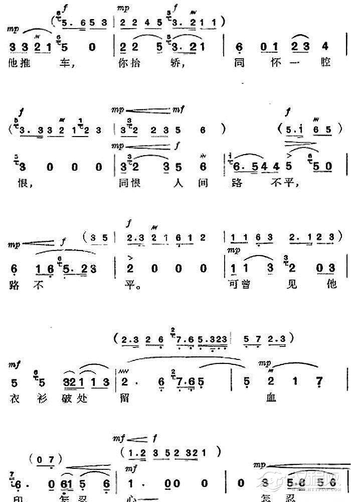 戏曲曲谱为娘亲哪顾得微躯薄命