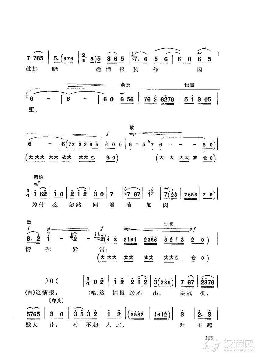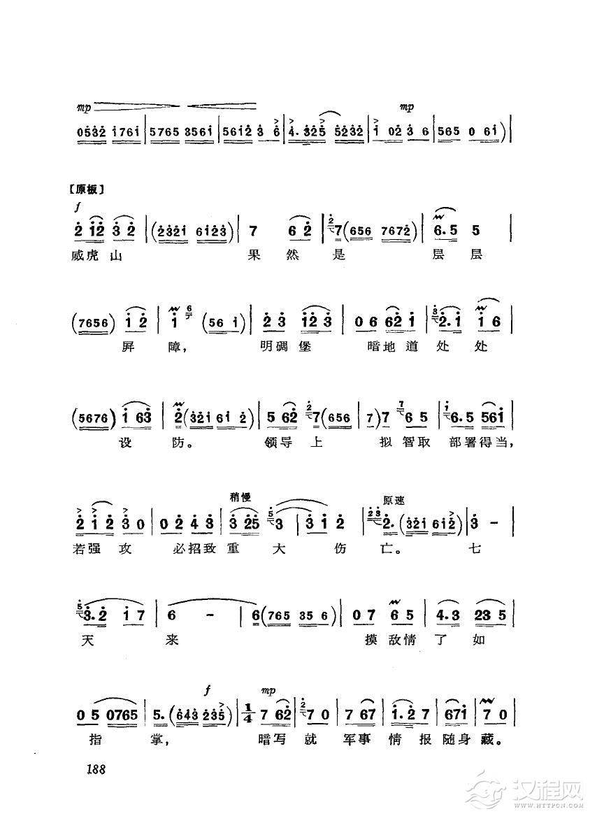戏曲曲谱革命现代京剧 奇袭白虎团 主旋律乐谱(101-124)