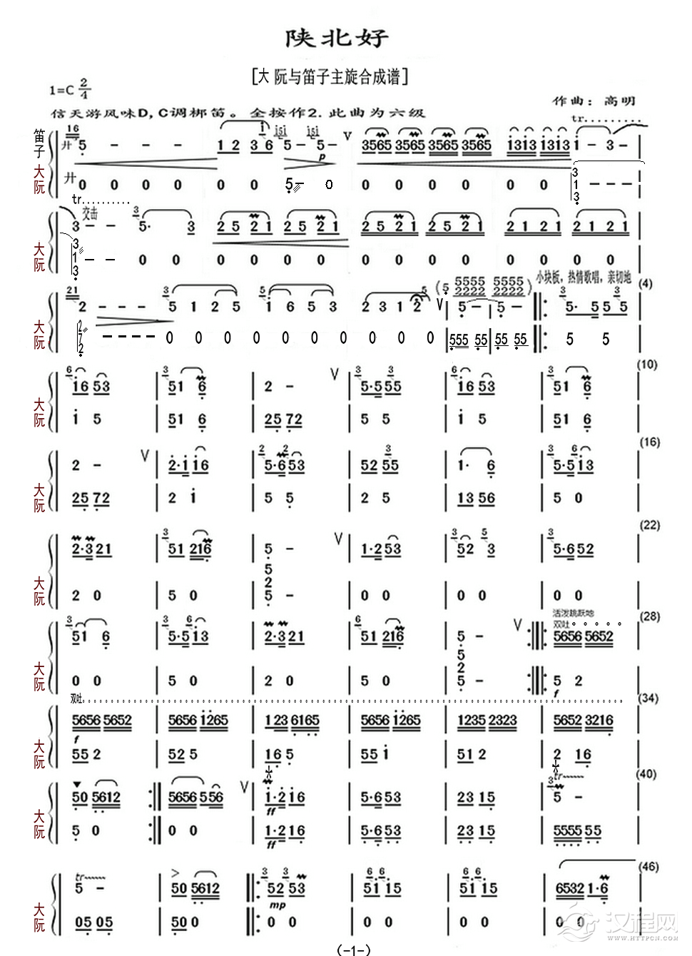曲谱大全北京喜讯到边寨(长笛分谱)01