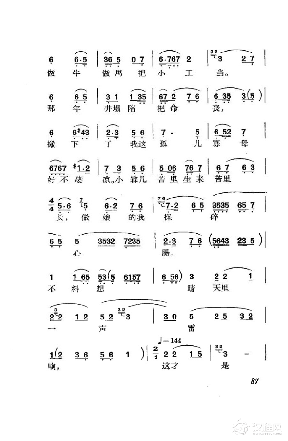 戏曲曲谱怕流水年华春去渺(《锁麟囊》选段、迟小秋演唱版、琴谱)