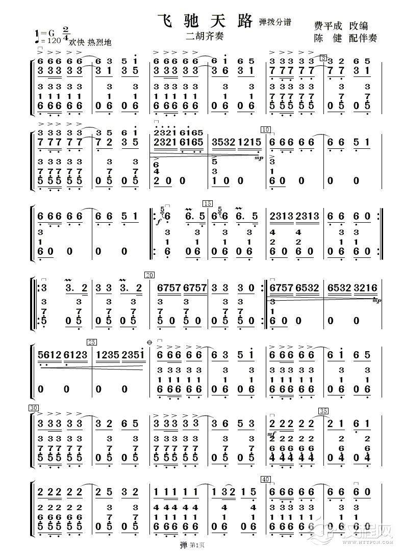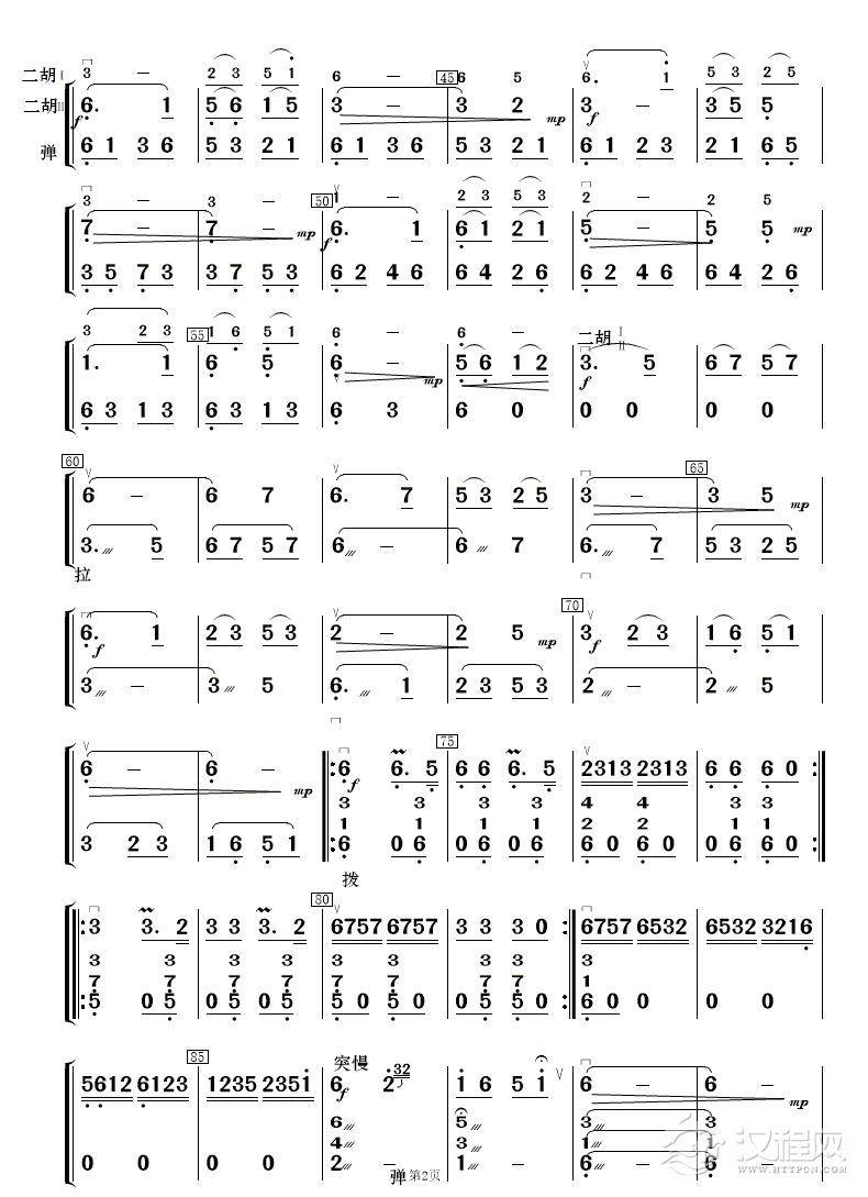 曲谱大全二胡弓法练习(二胡自然跳弓练习谱序号二)