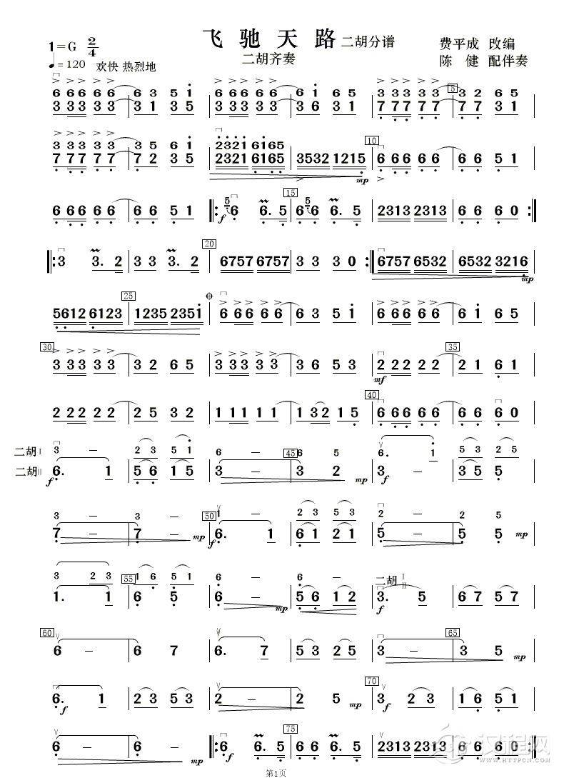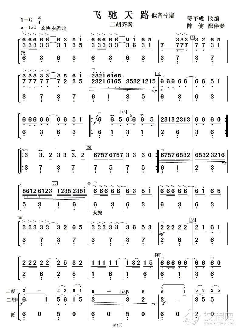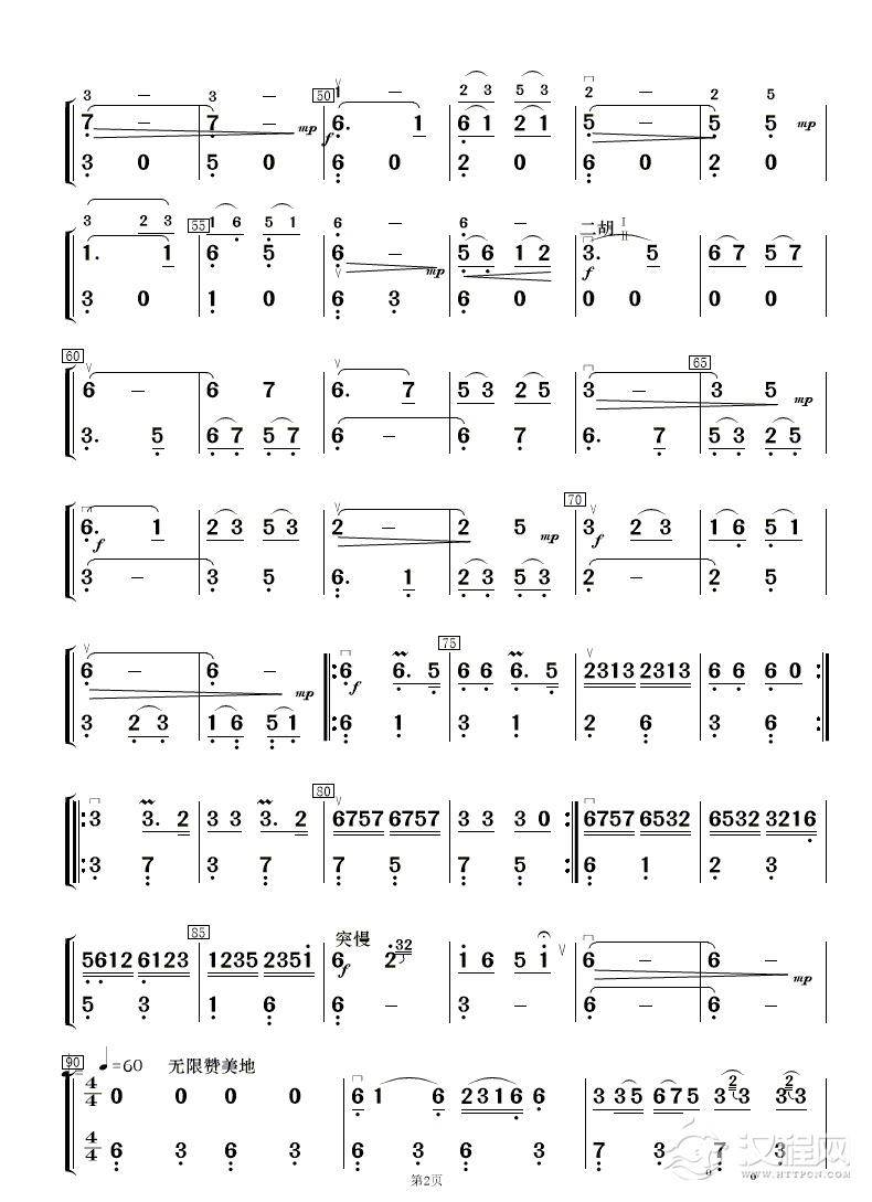曲谱大全母亲河(二胡谱)