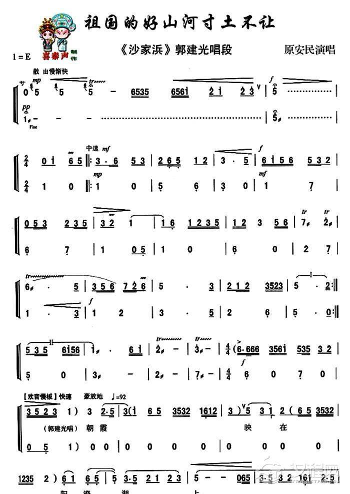 戏曲曲谱[秦腔]你待同志亲如一家(《沙家浜》沙奶奶、郭建光唱段)