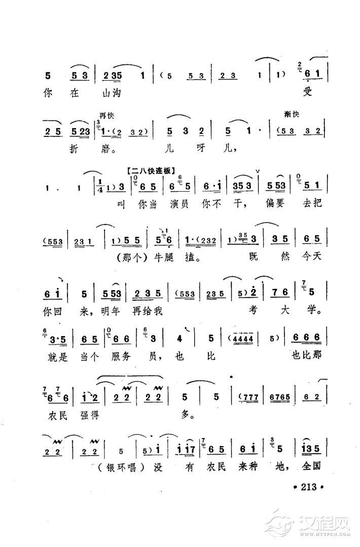 戏曲曲谱看起来简单,干起来难(电影版《朝阳沟》选段、银环、拴保对唱)