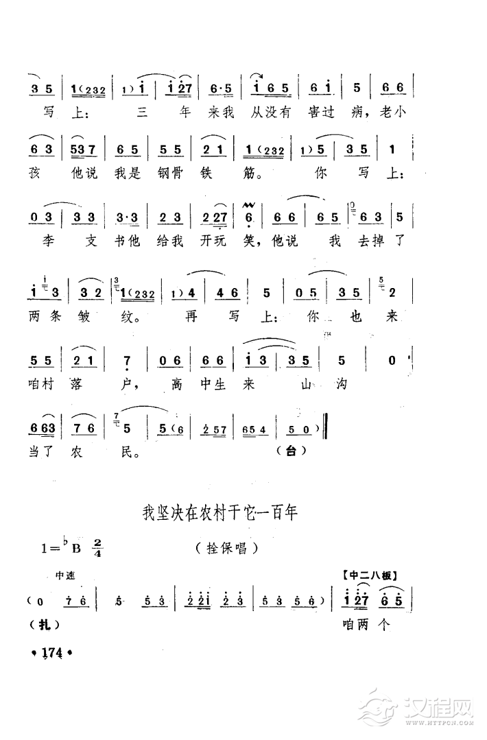 戏曲曲谱为农业,我干它一百年(电影版《朝阳沟》选段、拴保唱段)