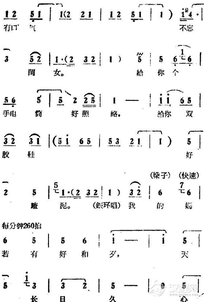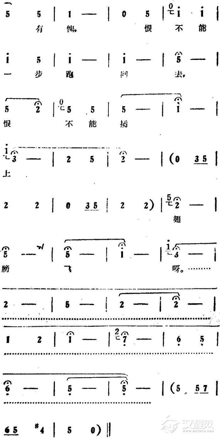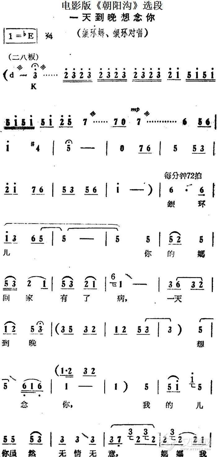 戏曲曲谱墙上画马不能骑(电影版《朝阳沟》选段、二婶唱段)