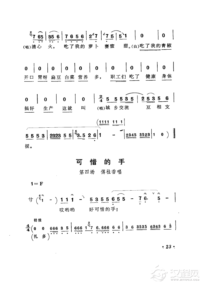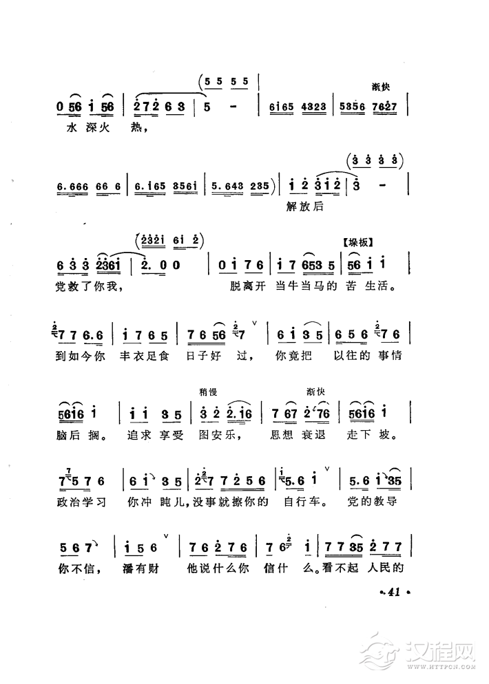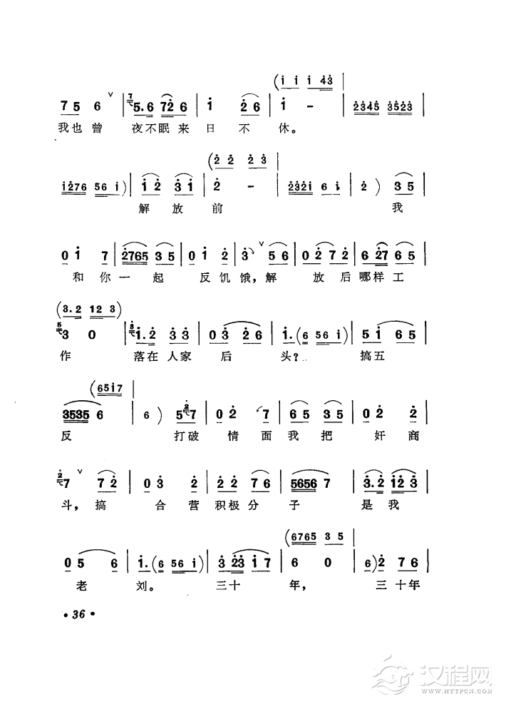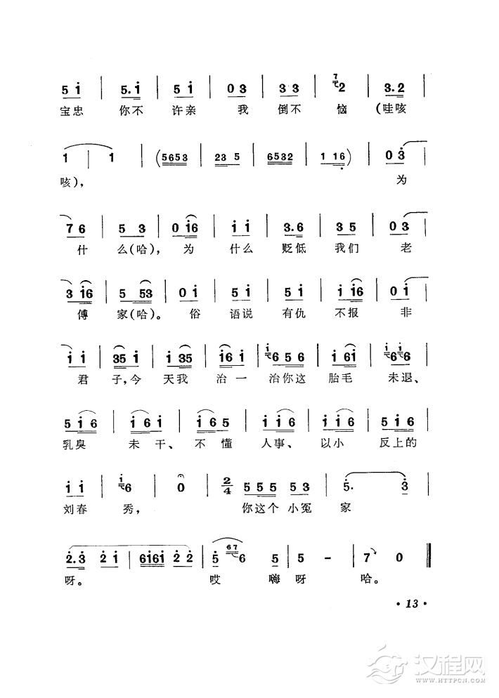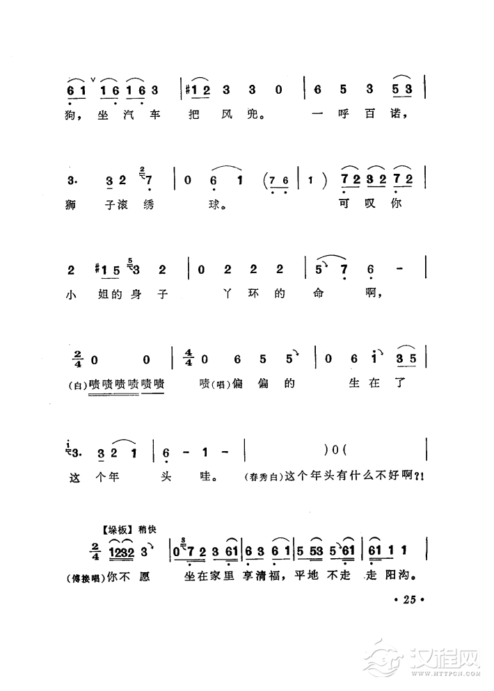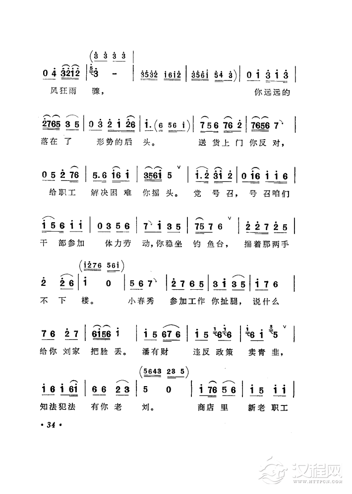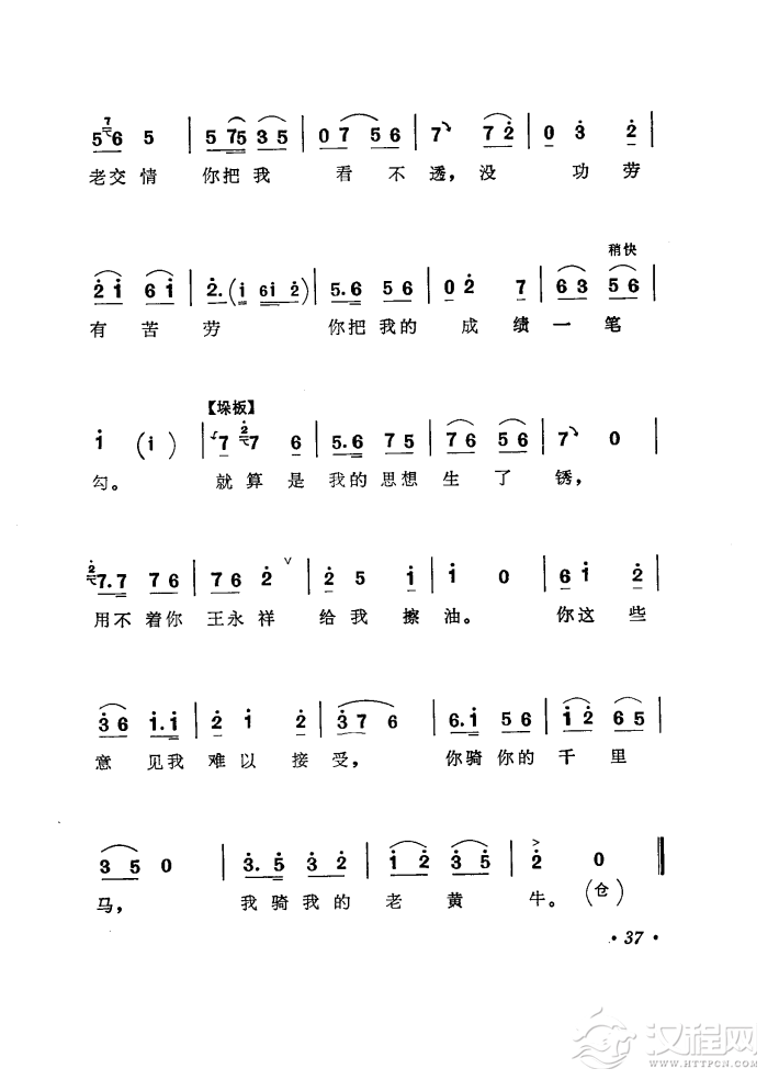 戏曲曲谱墙上画马不能骑(电影版《朝阳沟》选段、二婶唱段)