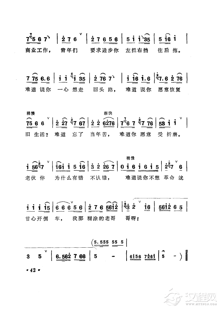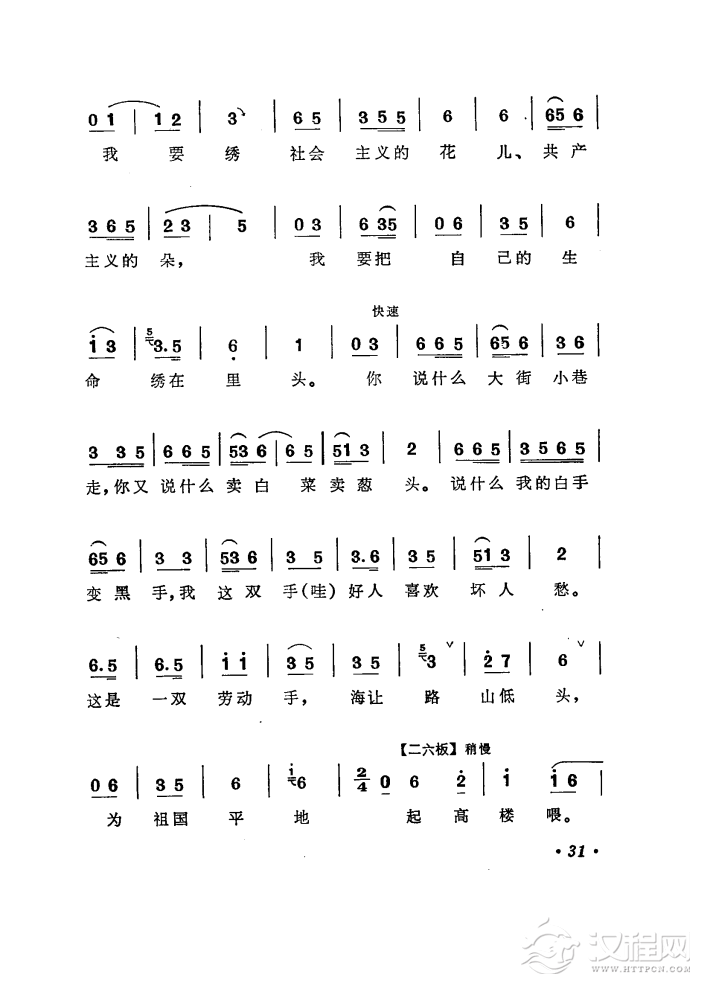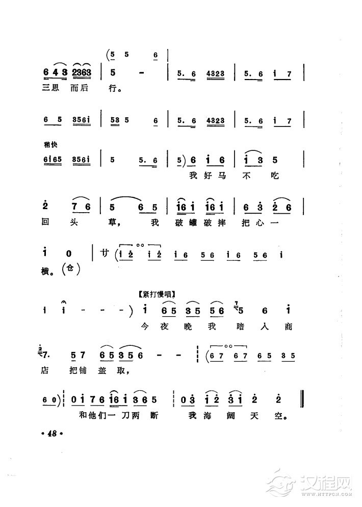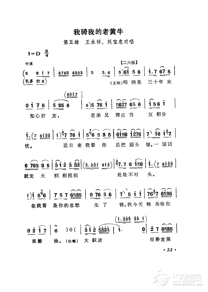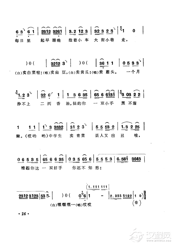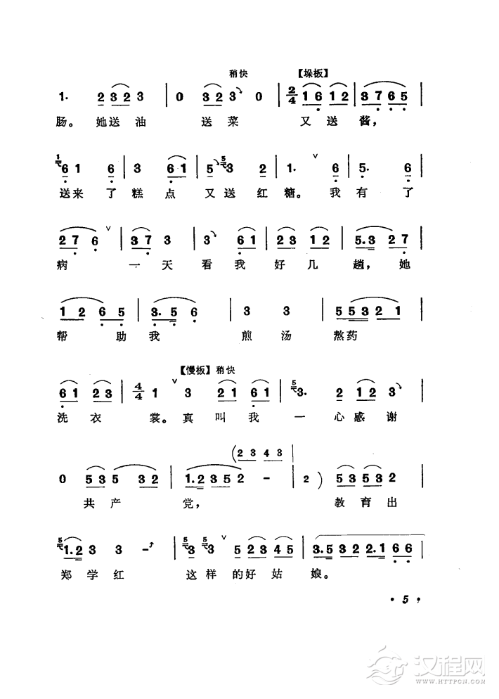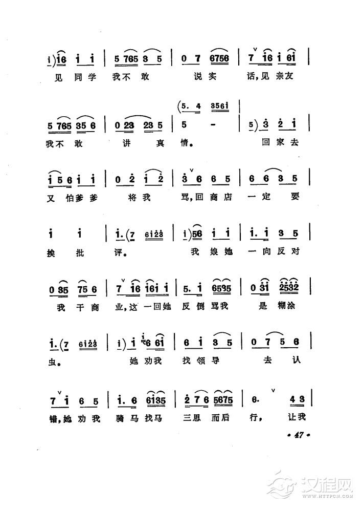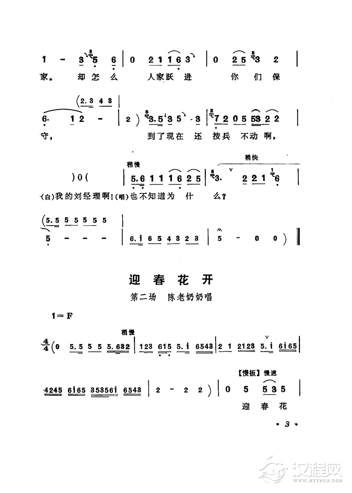 戏曲曲谱墙上画马不能骑(电影版《朝阳沟》选段、二婶唱段)