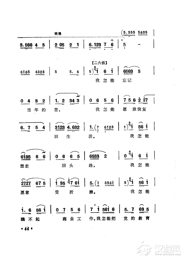 戏曲曲谱我可该如何(电影版《朝阳沟》选段、银环妈唱段)