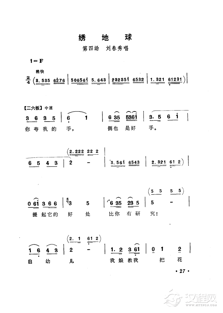 戏曲曲谱绣楼独叹(电影《女驸马》选曲、冯素珍唱段)