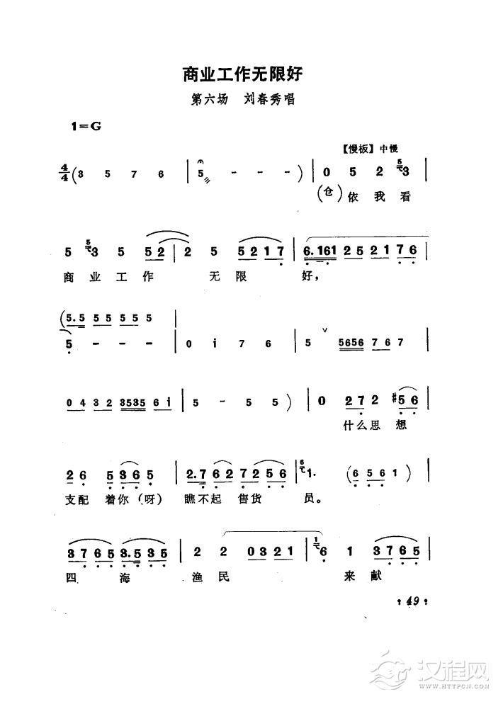戏曲曲谱商业工作无限好(《向阳商店》第六场 刘春秀唱段)