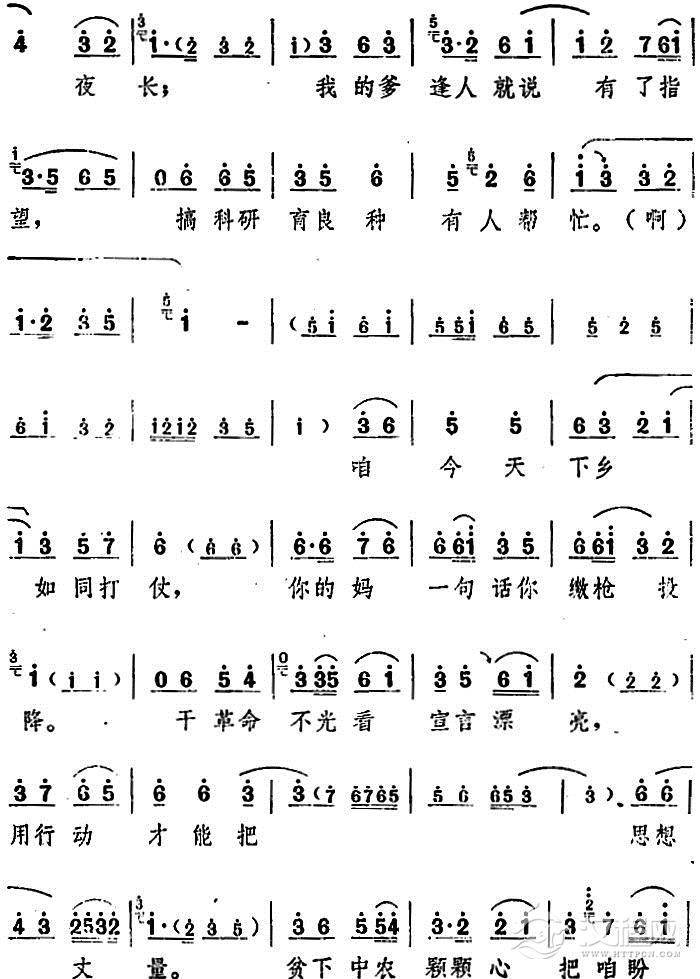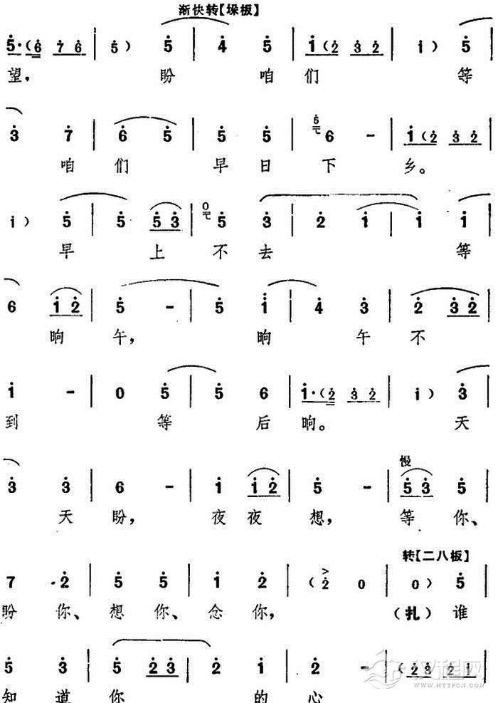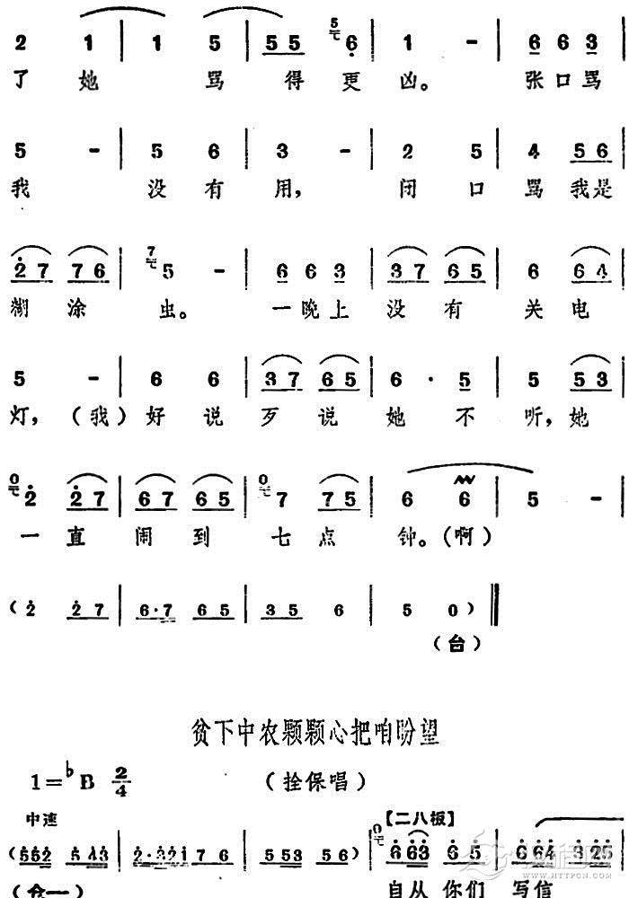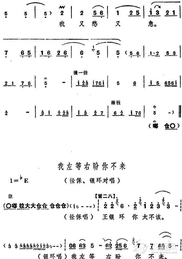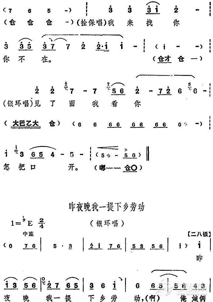 戏曲曲谱一天到晚想念你(电影版《朝阳沟》选段、银环妈、银环对唱)