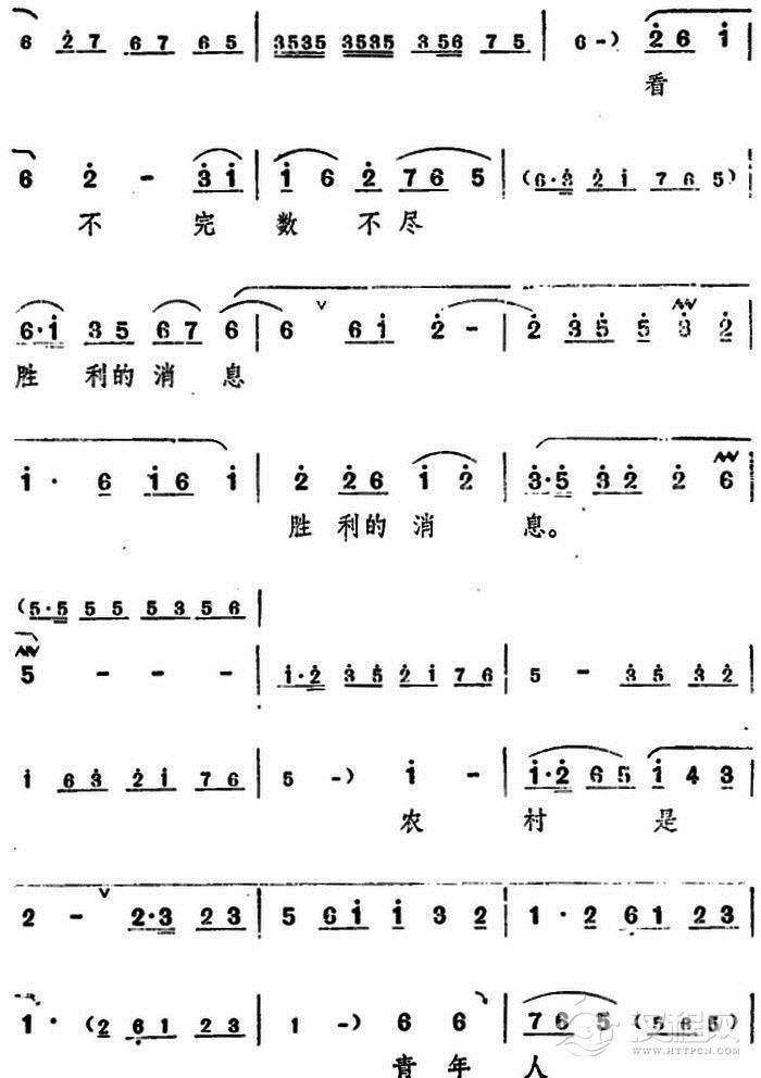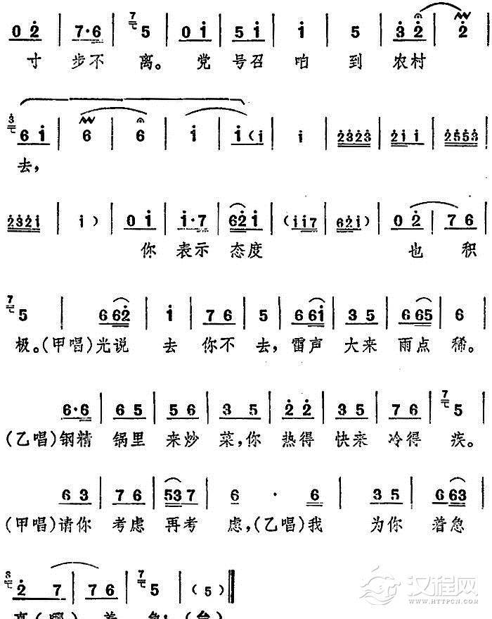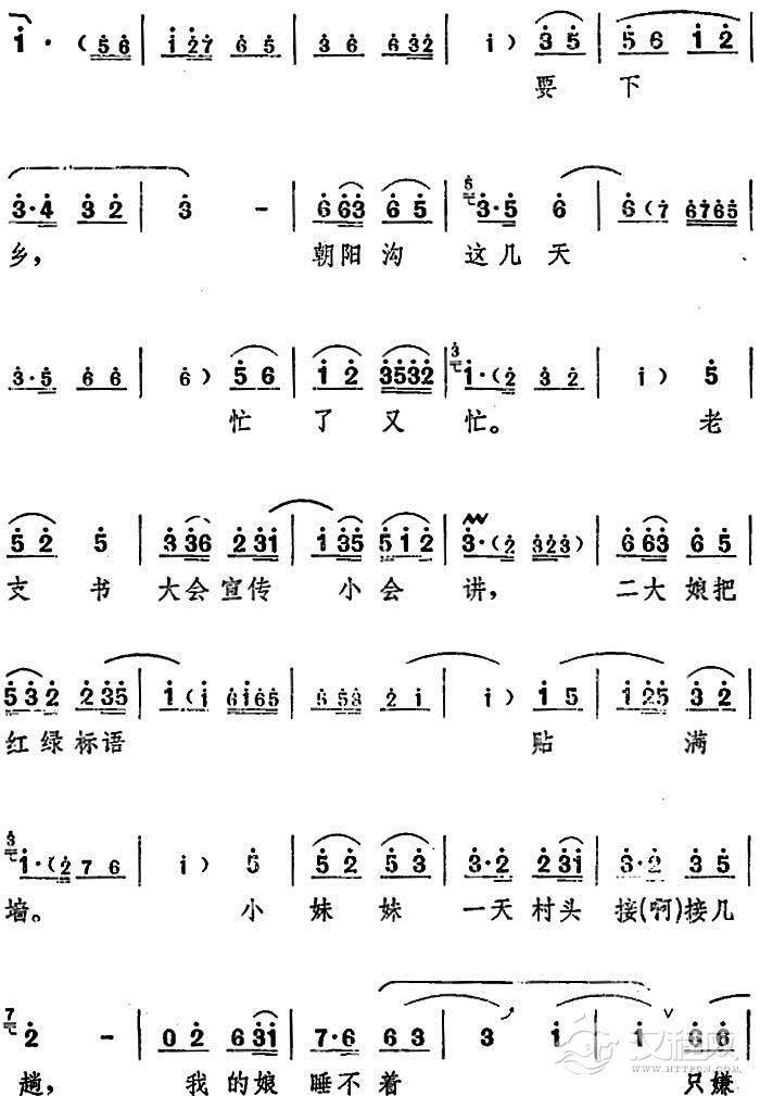 戏曲曲谱墙上画马不能骑(电影版《朝阳沟》选段、二婶唱段)