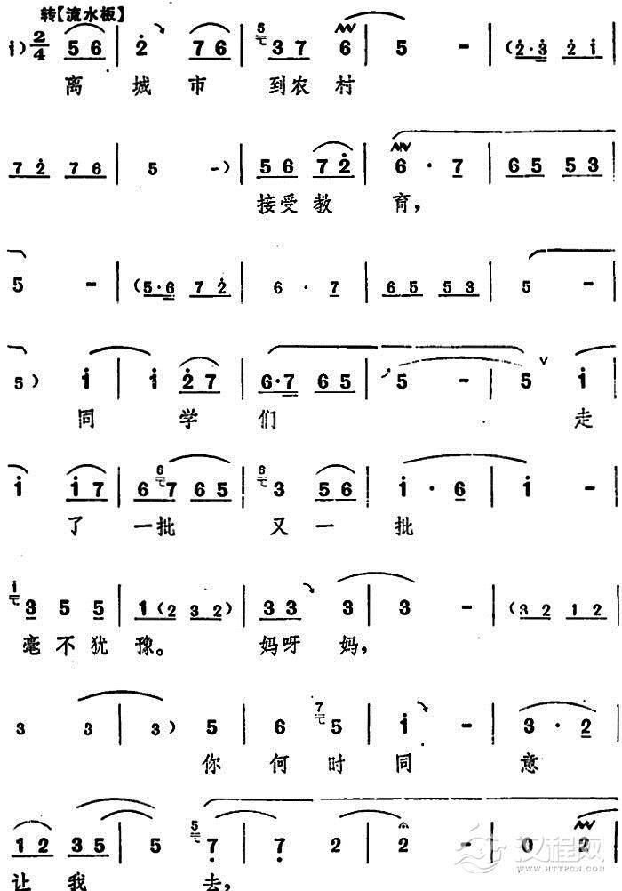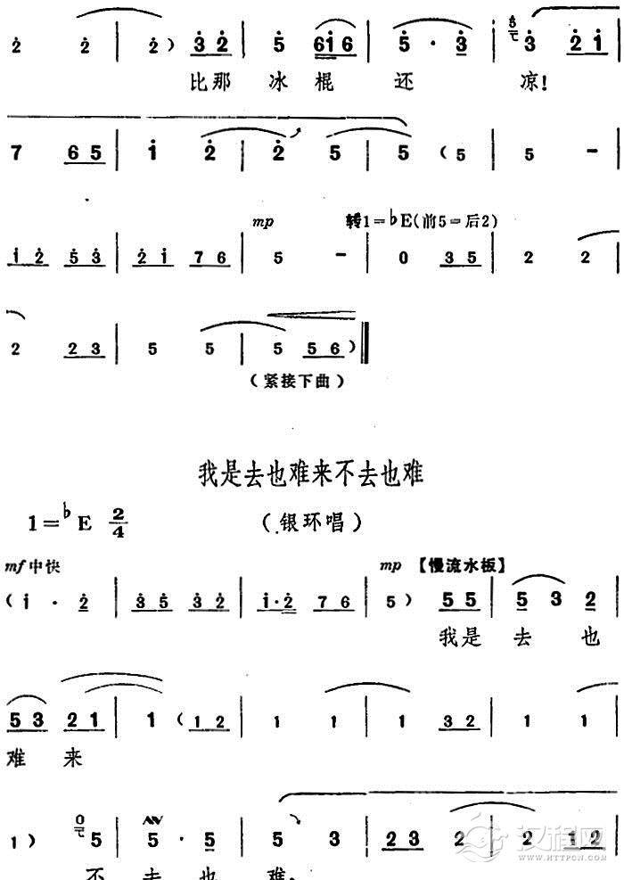 戏曲曲谱人也留来地也留(电影版《朝阳沟》选段、银环唱段、画外伴唱)