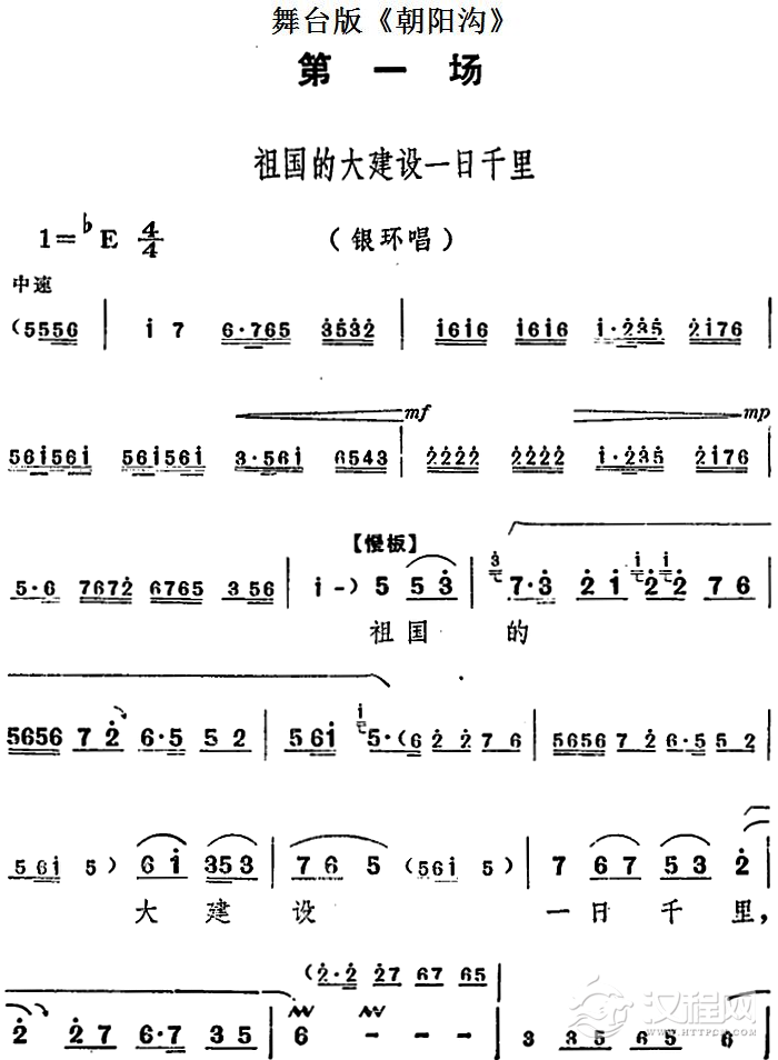 戏曲曲谱舞台版《朝阳沟》主旋律乐谱之序曲