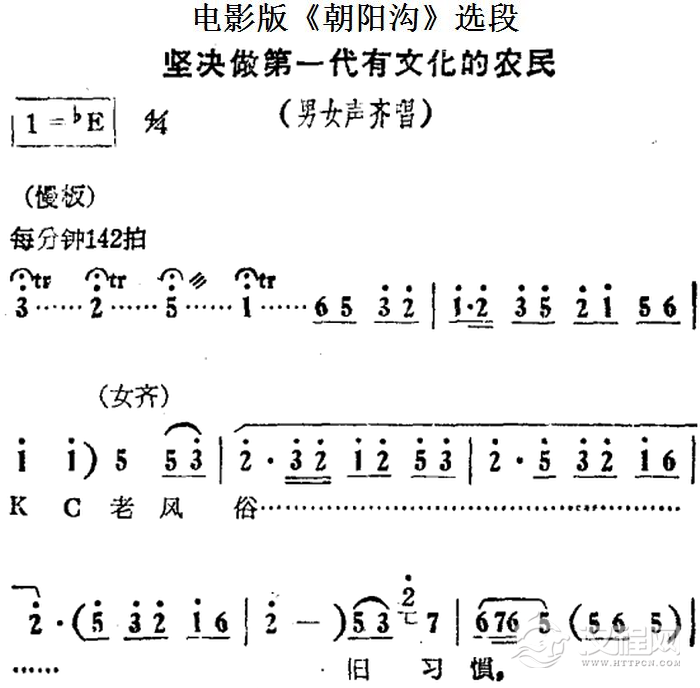 戏曲曲谱人也留来地也留(电影版《朝阳沟》选段、银环唱段、画外伴唱)