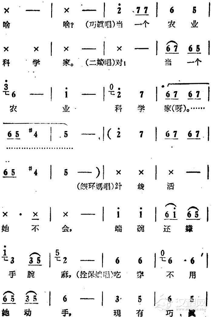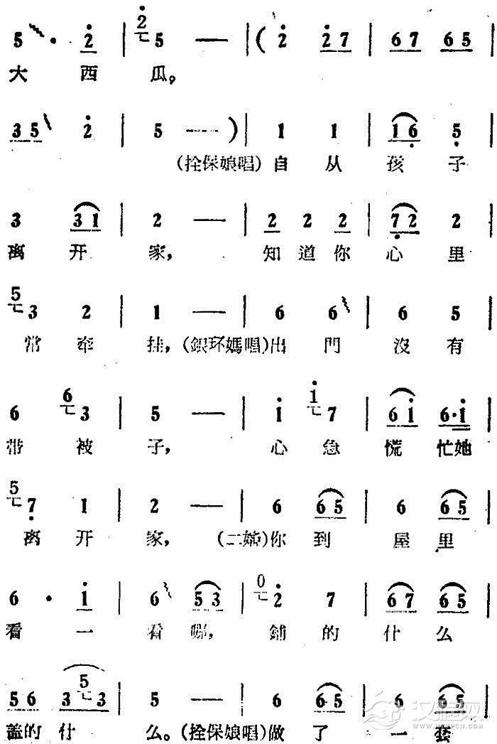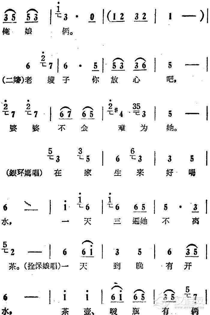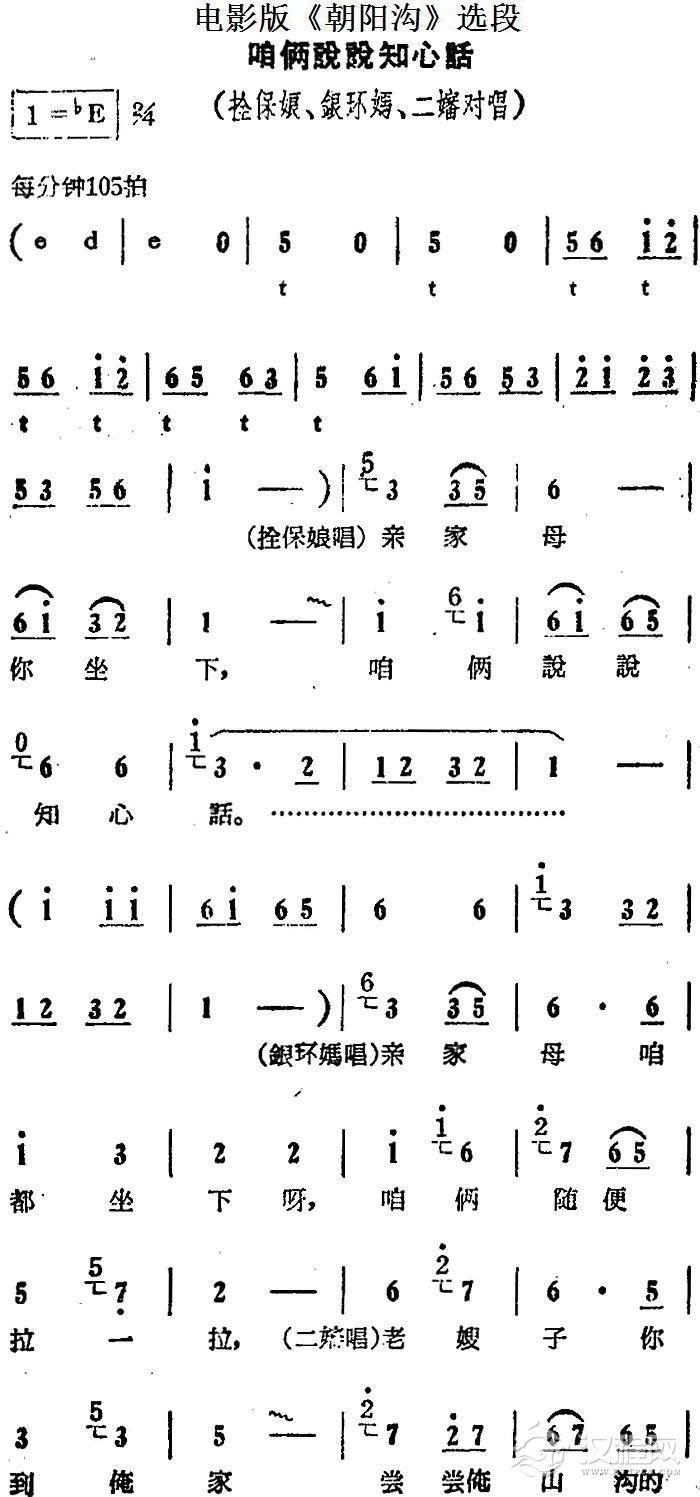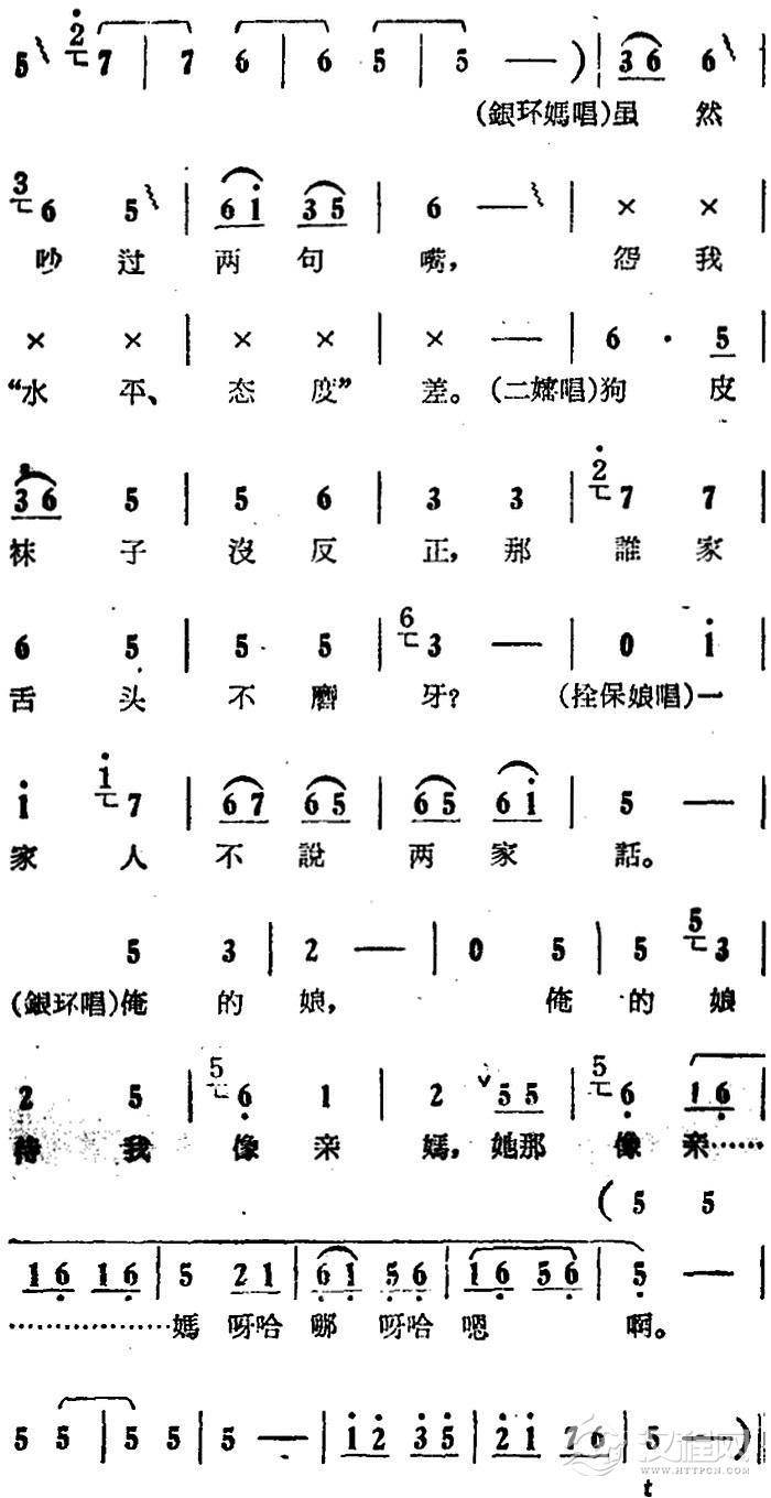 戏曲曲谱一天到晚想念你(电影版《朝阳沟》选段、银环妈、银环对唱)