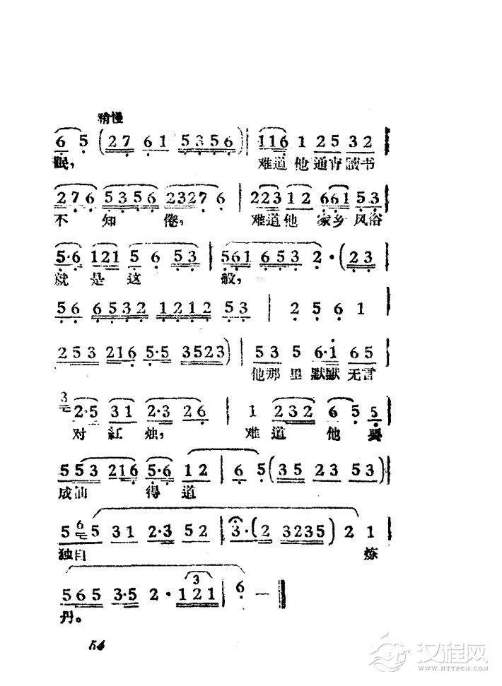 戏曲曲谱人也留来地也留(电影版《朝阳沟》选段、银环唱段、画外伴唱)