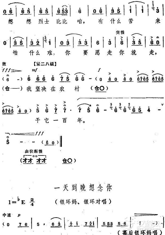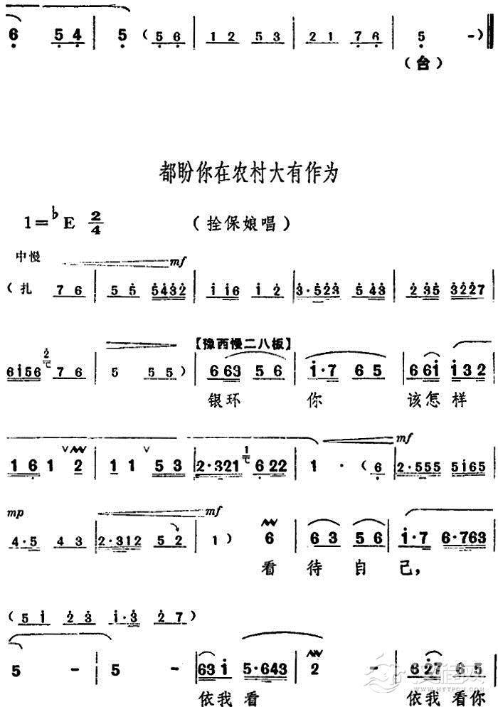 戏曲曲谱初次上阵(电影版《朝阳沟》选段、银环唱段)